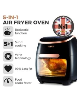 Tower Xpress Pro Vortx 5-in-1 Digital Air Fryer Oven 11L Black And Rose Gold T17039RGB