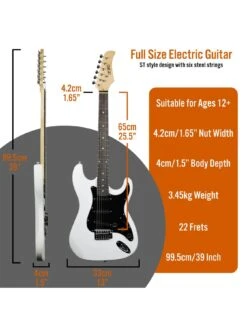 Introducing the 3rd Avenue Ultimate Electric Guitar Bundle – a perfect choice for aspiring musicians. This 3/4 size, right-handed 6-string electric guitar offers a comfortable ST design, making it ideal for children diving into the world of guitar playing. The guitar boasts three single-coil pickups, delivering modern pop and rock tones. With tone/volume controls, a 5-way pickup selector, durable alloy machine heads, and a fixed bridge, you can shape and maintain your sound with precision. Its smooth maple fretboard and low string height ensure effortless chord play, making learning a joy. Being a 3/4 Size intrument, it is most suited to children aged 8-12 years old.
