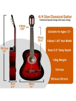 3rd Avenue Full Size Classical Guitar Pack – Redburst