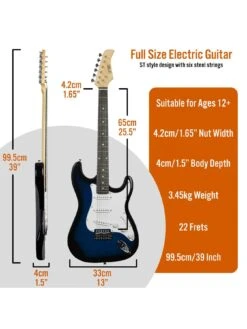 Introducing the 3rd Avenue Electric Guitar Ultimate Bundle – a perfect choice for aspiring musicians. This full-size, right-handed 6-string electric guitar offers a comfortable ST design, making it ideal for adults and teenagers diving into the world of guitar playing. The guitar boasts three single-coil pickups, delivering modern pop and rock tones. With tone/volume controls, a 5-way pickup selector, durable alloy machine heads, and a fixed bridge, you can shape and maintain your sound with precision. Its smooth maple fretboard and low string height ensure effortless chord play, making learning a joy.