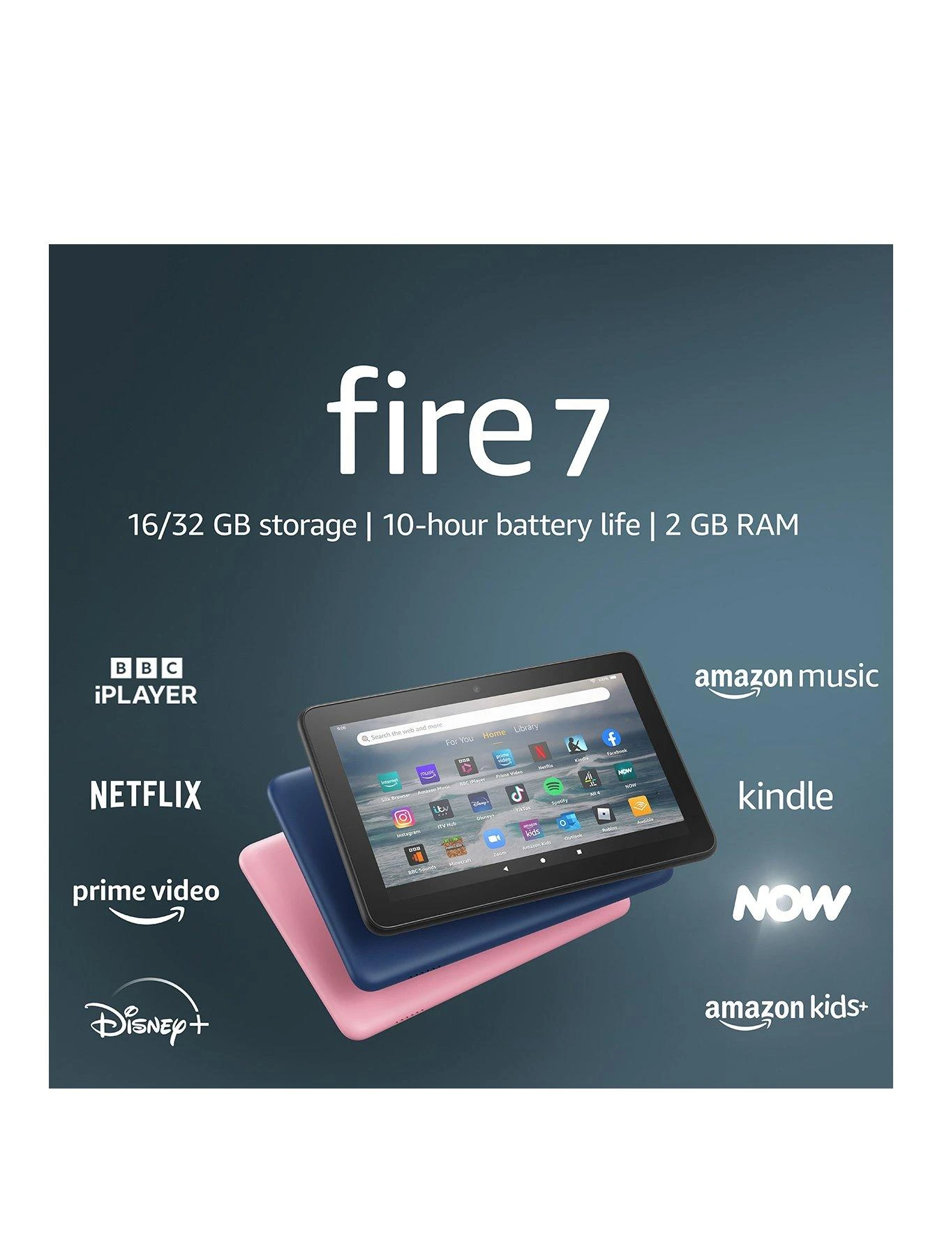 The Fire 7 features a vibrant 7 inch HD display, 2GB of RAM and 30% faster performance thanks to quad-core processing. Stream films watch videos or play games with the enhanced Wi-Fi. Enjoy downloaded content all day with up to 10 hours of mixed-use battery life. You also get a 2-year, worry-free guarantee.