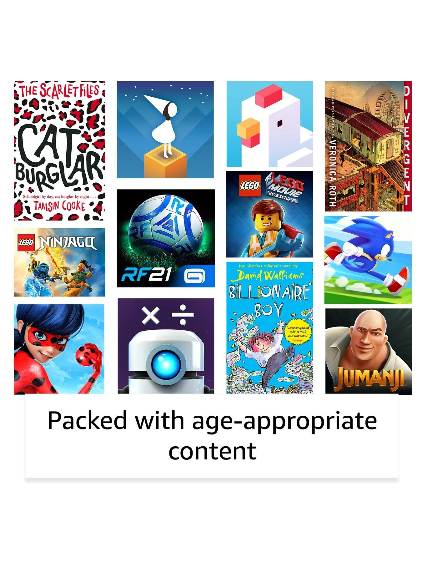 You’re always in charge. Limit screen time set educational goals and bedtimes and manage content for up to 4 child profiles using parental controls in the Amazon Kids app, or a web browser. Amazon Kids age filters ensure that your child sees age-appropriate content.