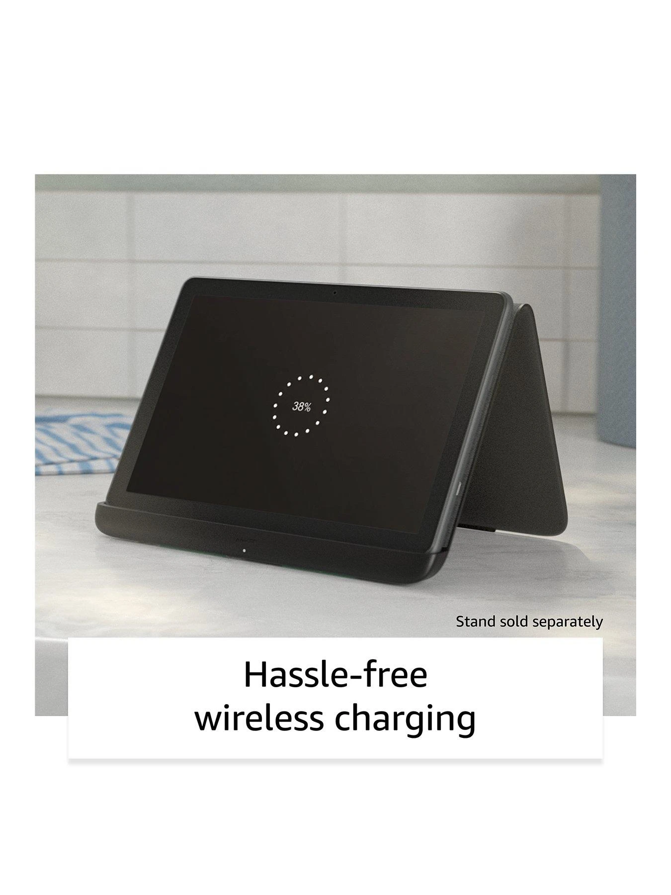Place your tablet in the Made for Amazon Wireless Charging Dock for Fire HD 10 Plus (11th Gen) or another Qi-certified wireless charger (all sold separately). You can also charge via the USB-C (2.0) port.