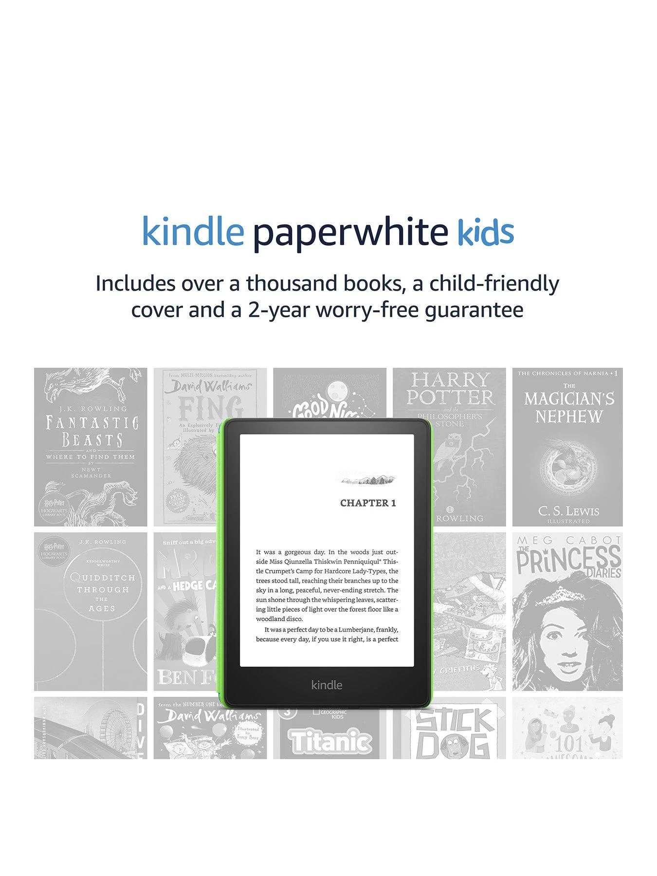 Great value: includes a Kindle Paperwhite (11th generation), 1 year of Amazon Kids+ with over 1000 children’s books, and a child-friendly cover – with a value of up to ????263.98*. Reading done right: Kindle Paperwhite Kids is purpose-built for reading, with a black & white 6.8″ 300 ppi glare-free display and up to 10 weeks of battery life. Includes over a thousand books and Audible books: with 1-year of Amazon Kids+. No distractions: Kindle Paperwhite Kids is designed for reading-no apps, videos or games. It also offers OpenDyslexic, a font preferred by some readers with dyslexia. Waterproof (IPX8) and worry free: children can take their Kindle Paperwhite Kids to read by the pool or on the beach. Kindle Paperwhite Kids has been tested to withstand accidental immersion in water. With a 2-year worry-free guarantee, if it breaks, return it and we’ll replace it for free. Anytime reading: adjustable warm light lets children read indoors and outdoors, day and night. Tools for readers: Kindle Paperwhite Kids includes Vocabulary Builder and Word Wise to help young readers build their skills.