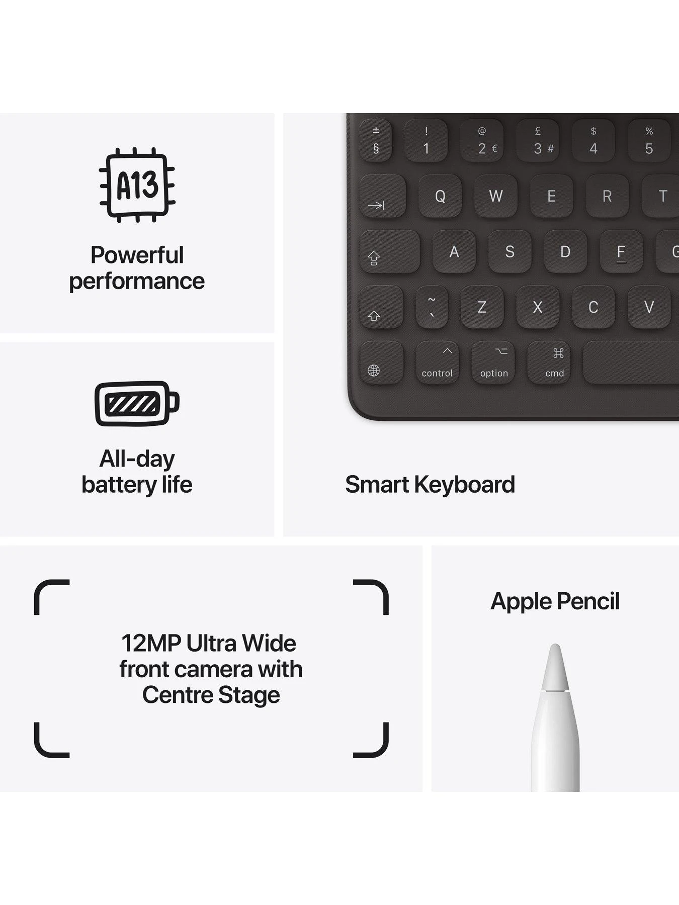Powerful. Easy to use. Versatile. The new iPad has a beautiful 10.2-inch Retina display, powerful A13 Bionic chip, an Ultra Wide front camera with Centre Stage, and works with Apple Pencil and the Smart Keyboard.1 iPad lets you do more, more easily. All for an incredible price.