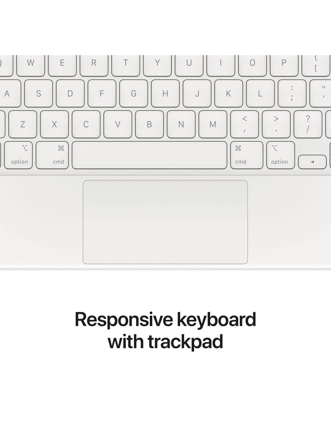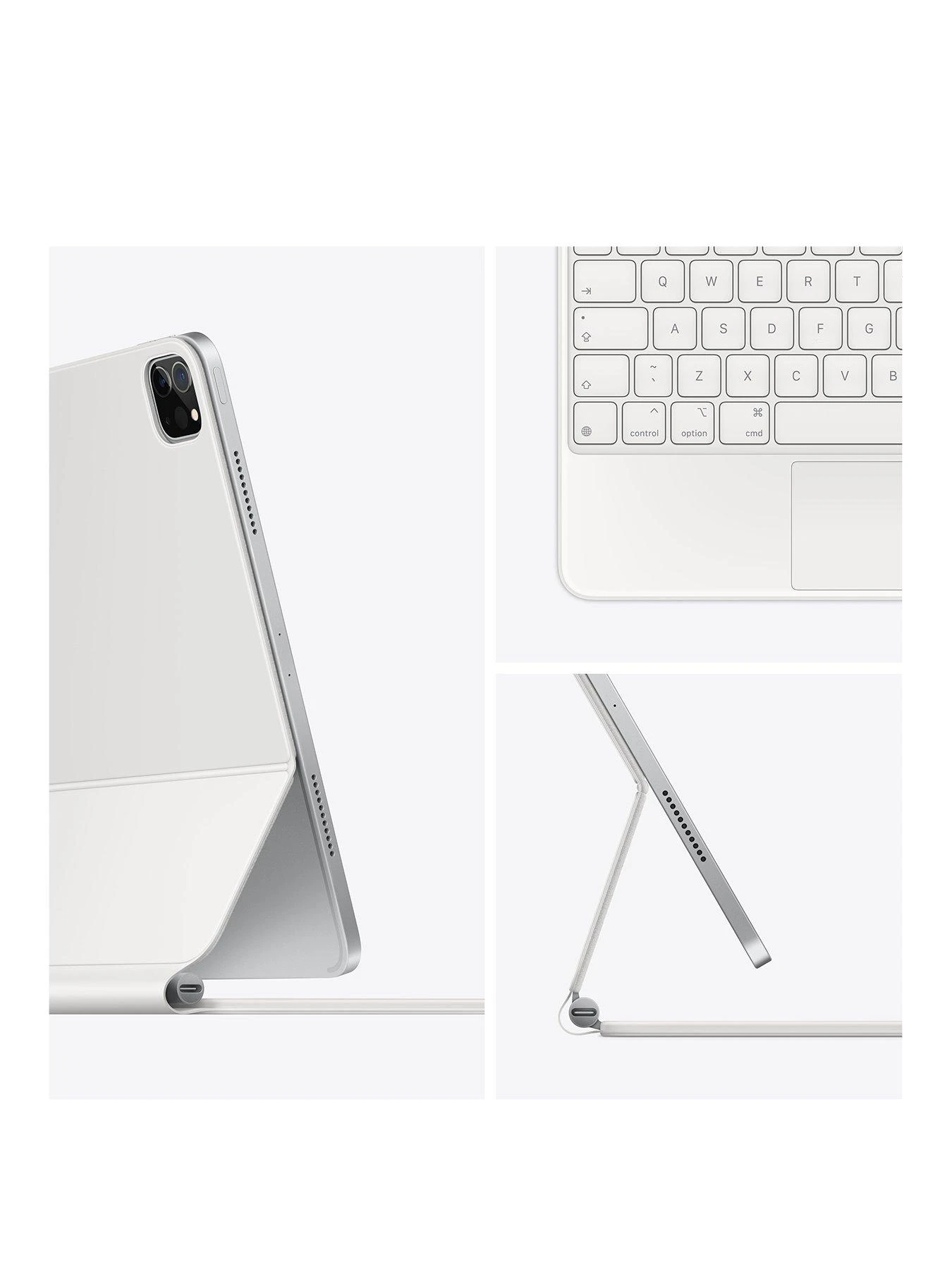 The Magic Keyboard is the perfect companion for iPad Pro, now available in two colours. It features a comfortable, responsive typing experience, a trackpad that opens up new ways to work, a USB-C port for charging, backlit keys, and front and back protection. With a floating cantilever design, iPad Pro attaches magnetically and allows you to smoothly adjust to the perfect viewing angle.