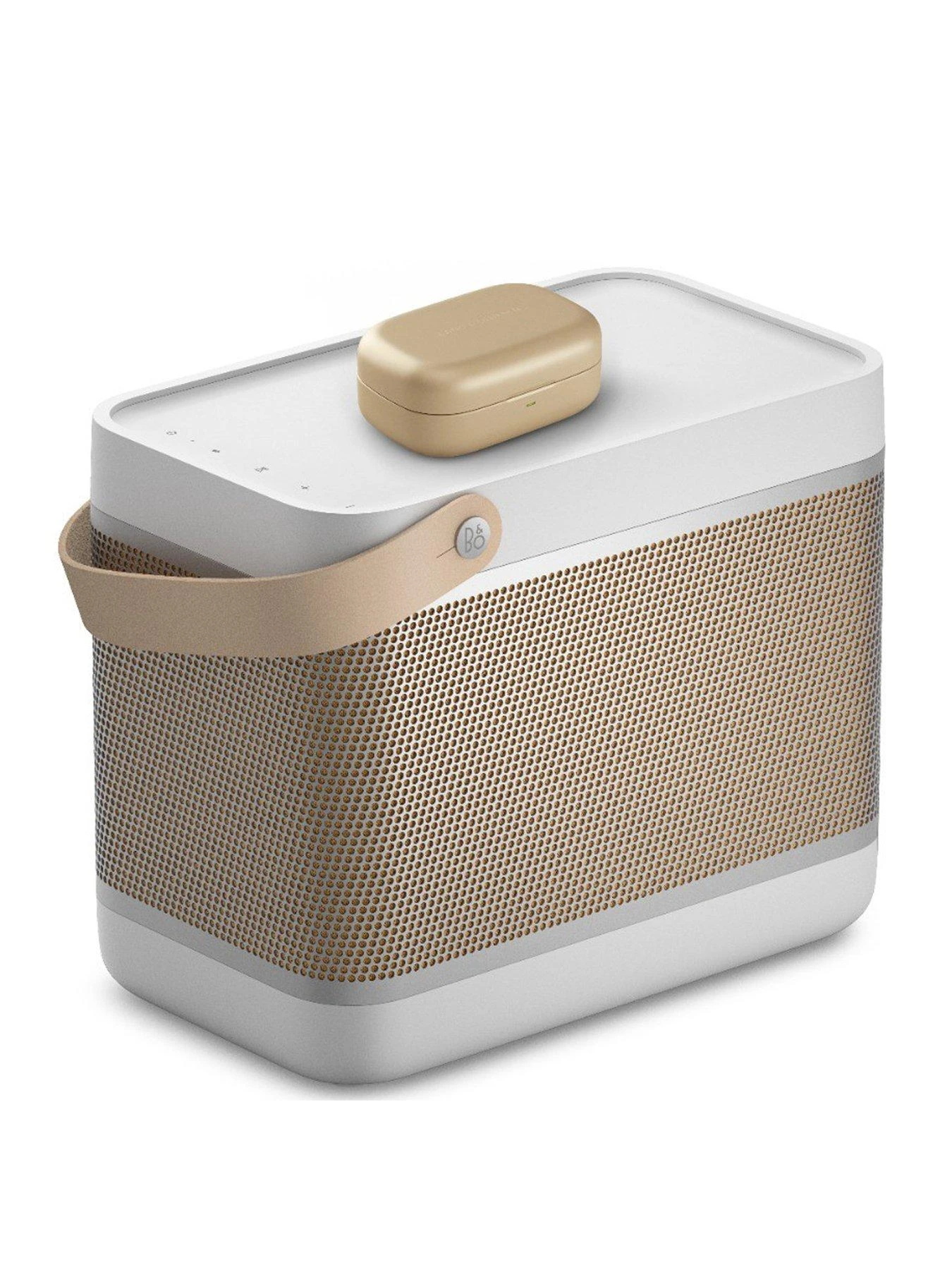 B&O Beolit 20 Bluetooth Speaker + B&O Beoplay EX Earbuds – high-quality audio for life on the go.