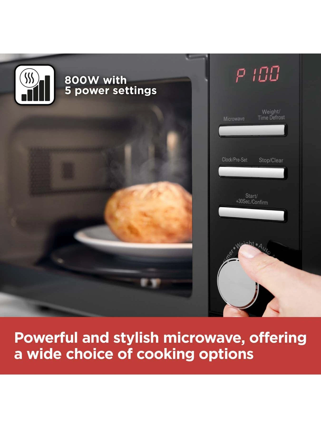 Have quick and easy meals in minutes in this stylish microwave by Black & Decker. Eat your favourite meals in minutes by choosing between the 5 power functions with a maximum power of 800W, ideal for everyday living. Its huge 20-litre capacity fits a standard sized plate, allowing you to cook larger quantities.