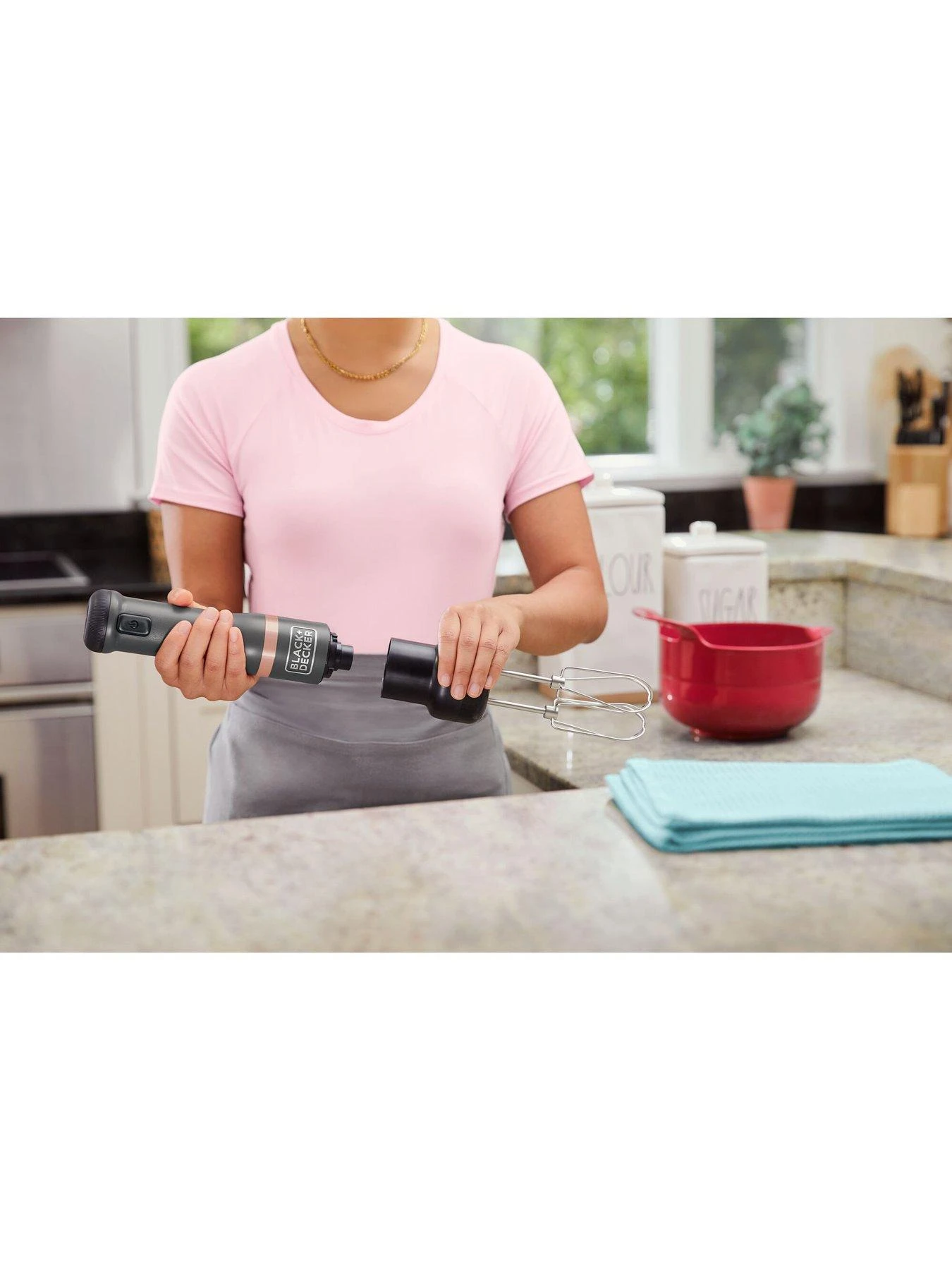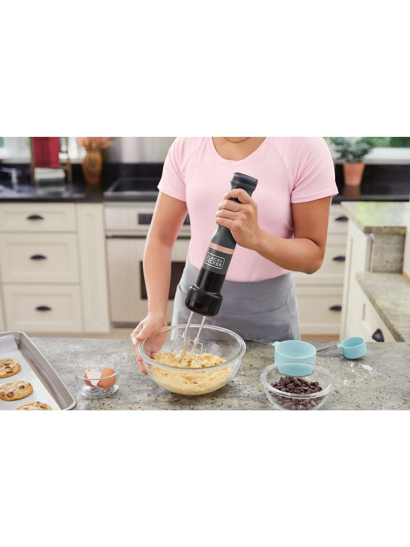 Hand mixer attachment compatible with the BLACK+DECKER kitchen wand, your cordless, rechargeable 3-in-1 kitchen multi-tool. Great for baking from scratch as well as thicker compounds. Easy to rest on the bowl when adding in ingredients between mixing, combined with the cordless convenience makes for a no mess no stress multi-tool. *BLACK+DECKER Kitchen Wand sold separately*