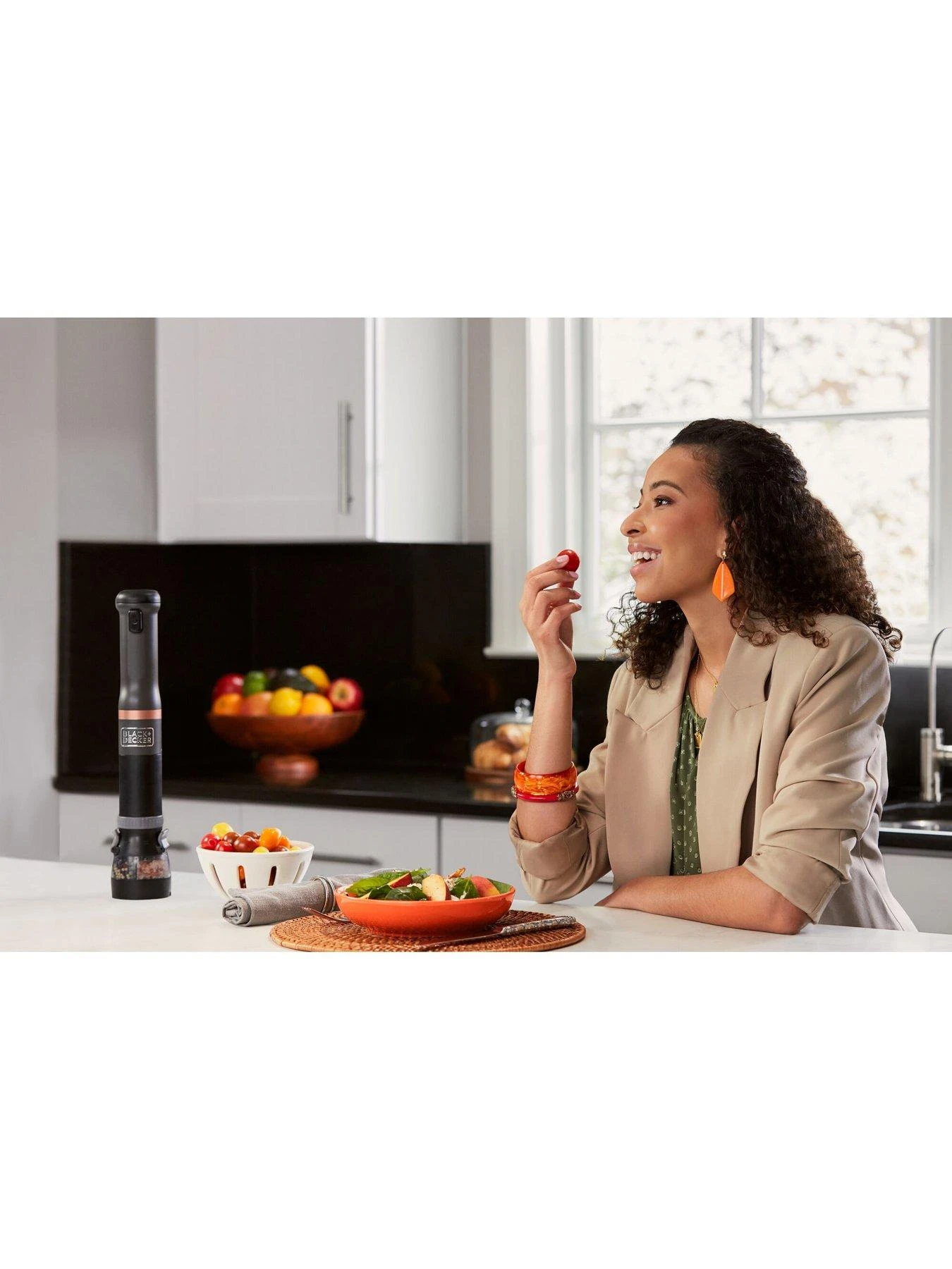 Spice grinder attachment compatible with the BLACK+DECKER kitchen wand, your cordless, rechargeable 3-in-1 kitchen multi-tool. With 2 spice compartments and adjustable grind density, this attachment is ideal for grinding classic combinations like salt & pepper or creating your own spice mix. Discover the convenience of cordless, with single-handed operation and a space-saving design. *BLACK+DECKER Kitchen Wand sold separately*