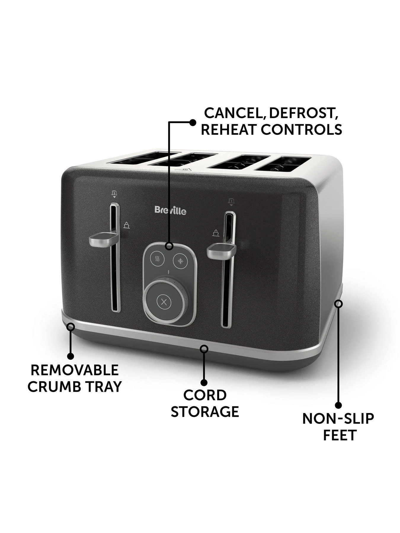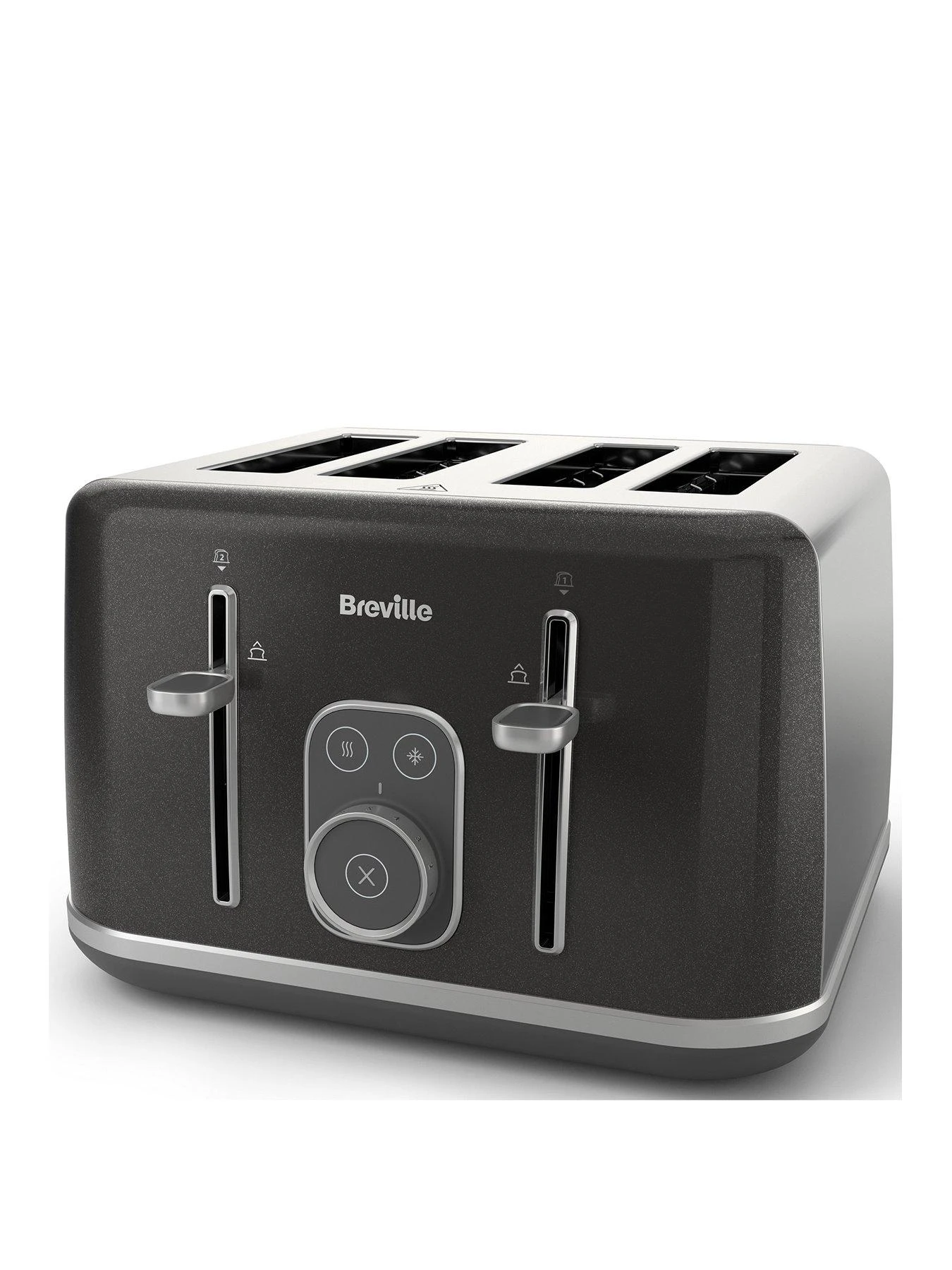 Take mixed metals to the next level with the Breville Aura Collection. The shimmering metallic finish with contemporary chrome accents perfectly complements your kitchen space. This Breville toaster also handles the basics with ease. View your toast’s progress mid-cycle with Lift & Look, and remove smaller slices without burning fingers with the High Lift facility. The variable width slots accommodate different bread sizes, crumpets and bagels, while the variable browning controls ensure every slice is just the way you like it. A removable crumb tray and cord storage helps keep your worktop clean and tidy.