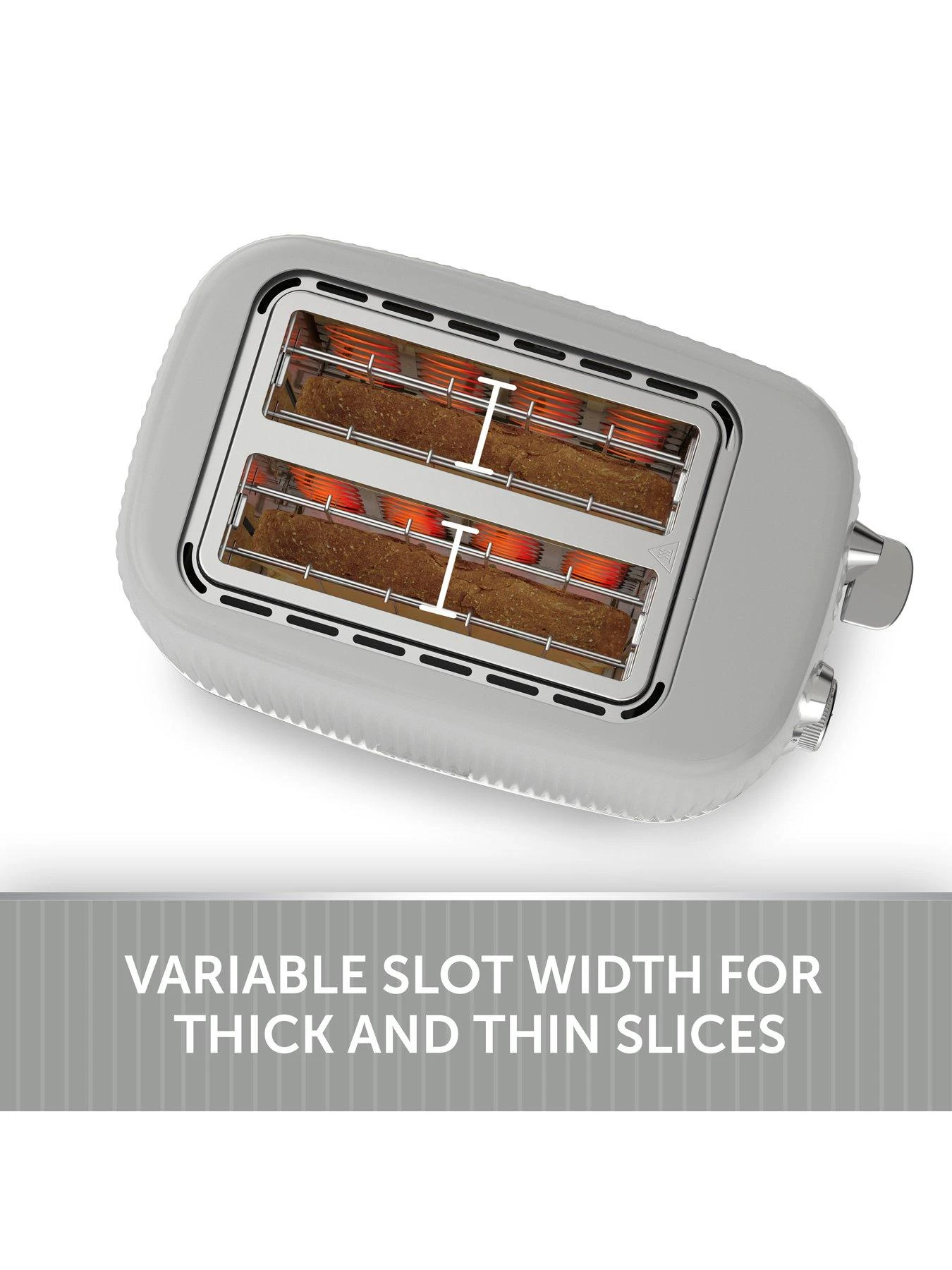 - Variable width bread slots allow for both thick and thin slices