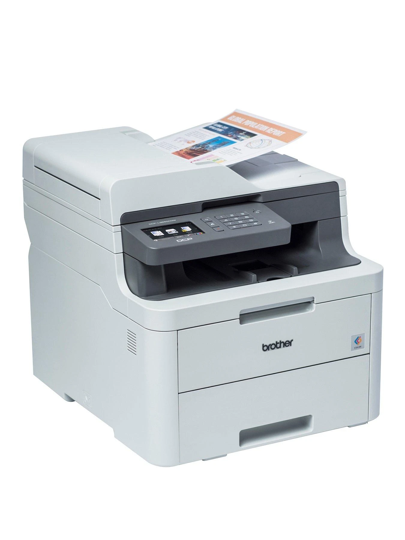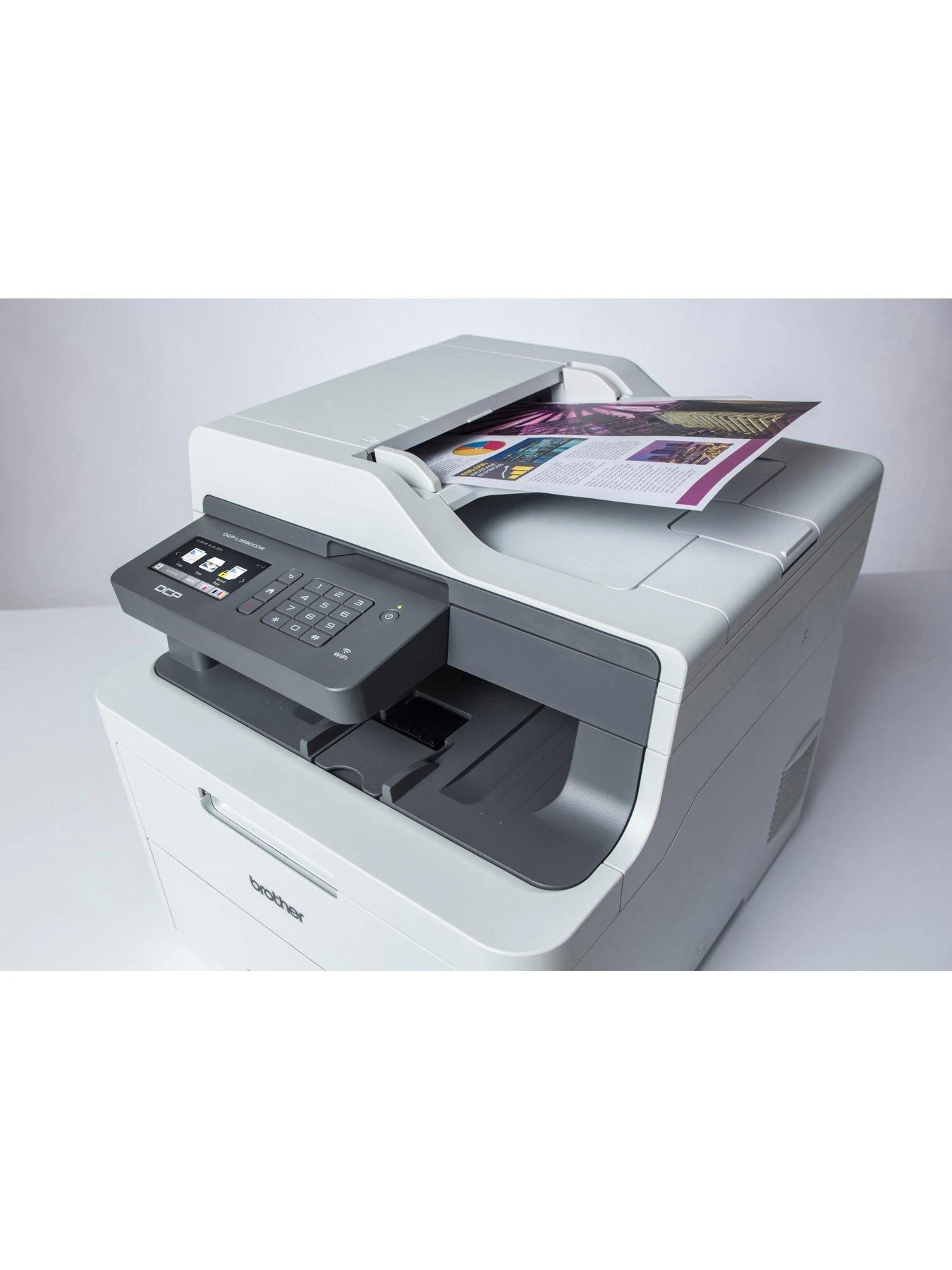 The Brother DCP-L3550CDW Wireless 3-in-1 Printer offers fast print, copy and scan functions in a compact design.