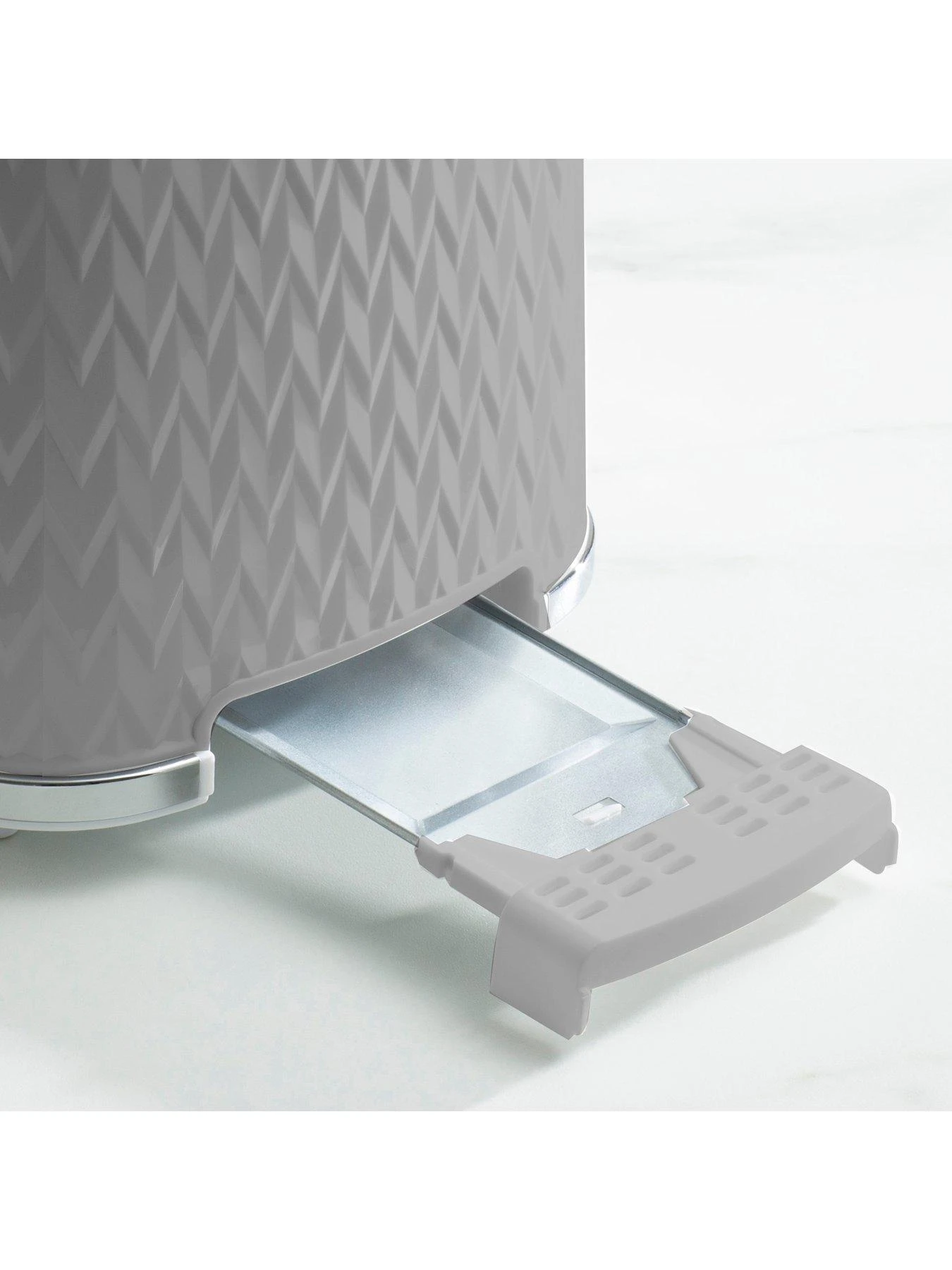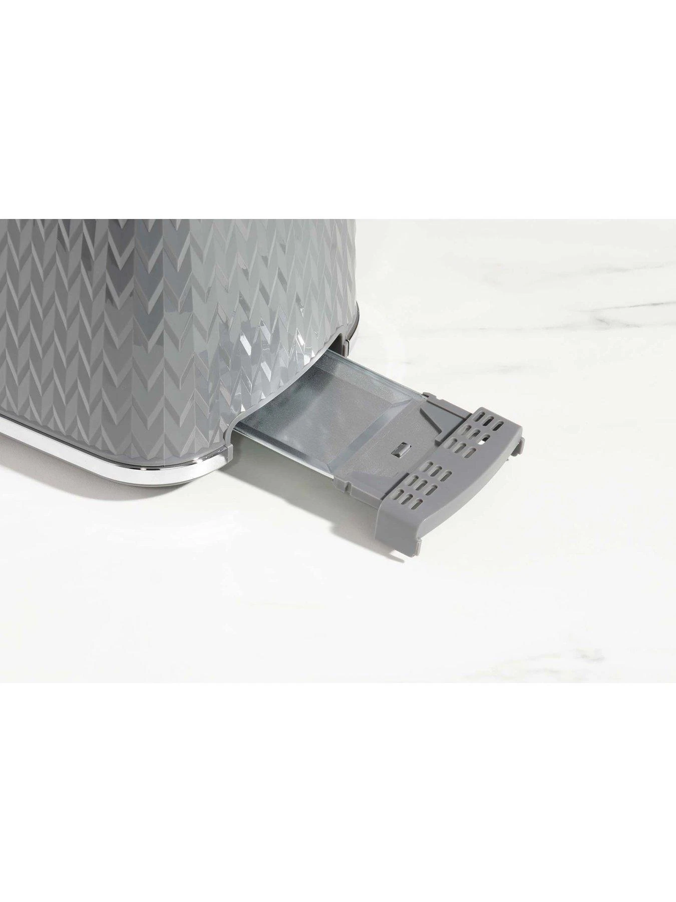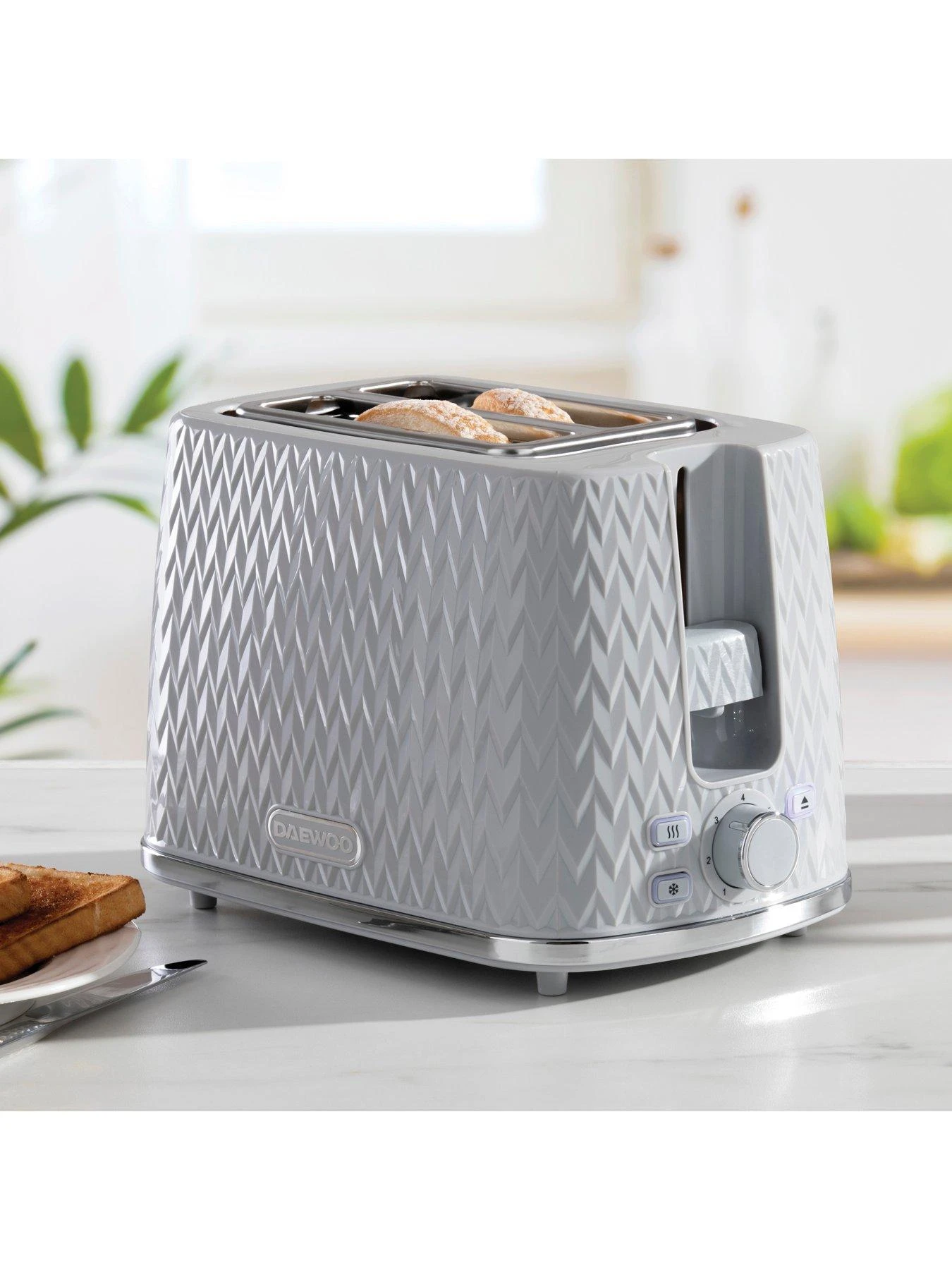 With its distinctive, contemporary and stylish design this toaster will compliment and kitchen worktop and is sure to lookg great in any modern home. Defrost frozen bread or reheat a cold slice and the cancel functionlets you halt toasting at any time. Keep your kitchen surfaces tidy with the help of the built-in crumb tray. Whether you like your toast well-done or lightly browned get the perfect slice every time with the toasters browning control function.