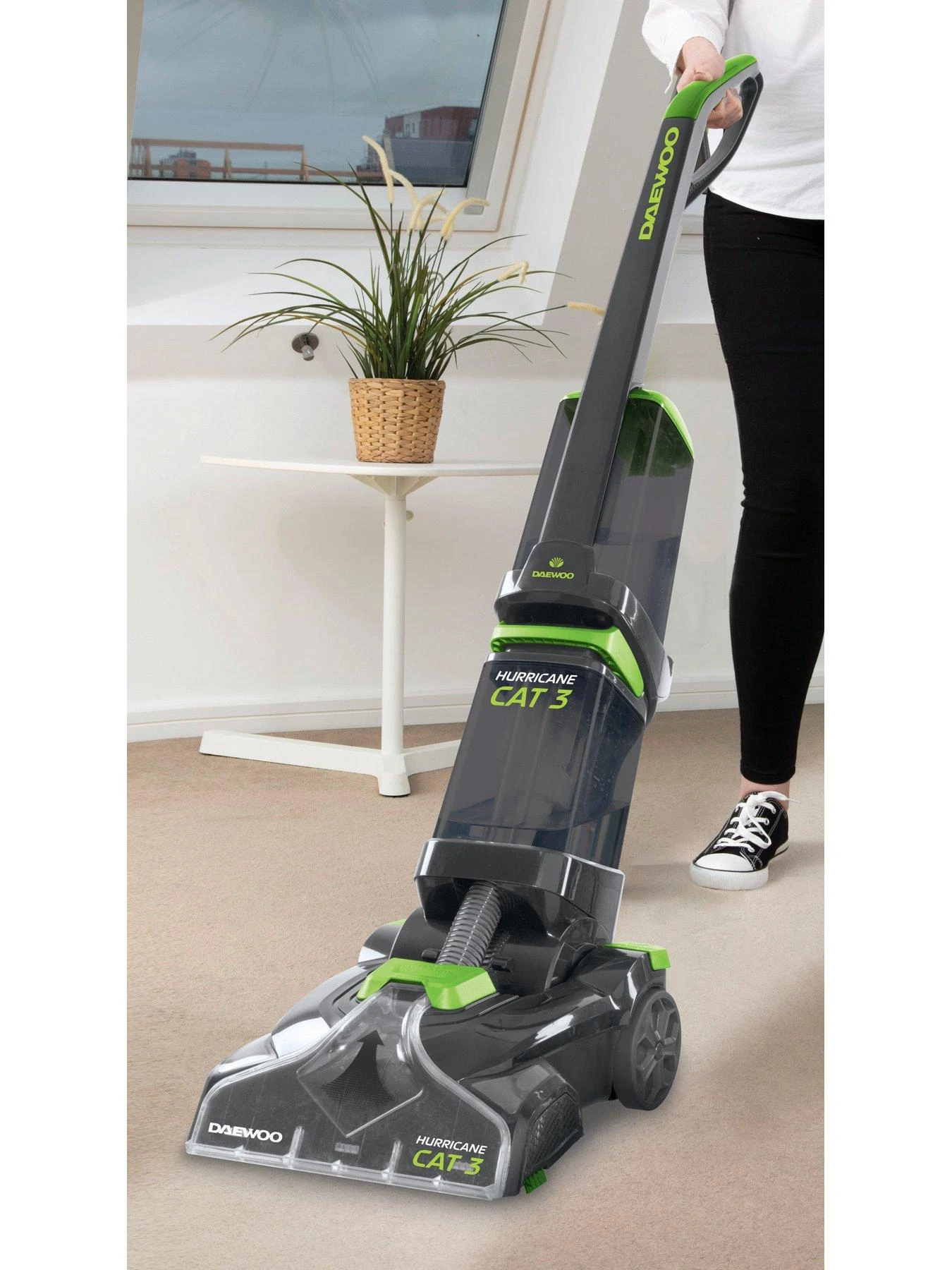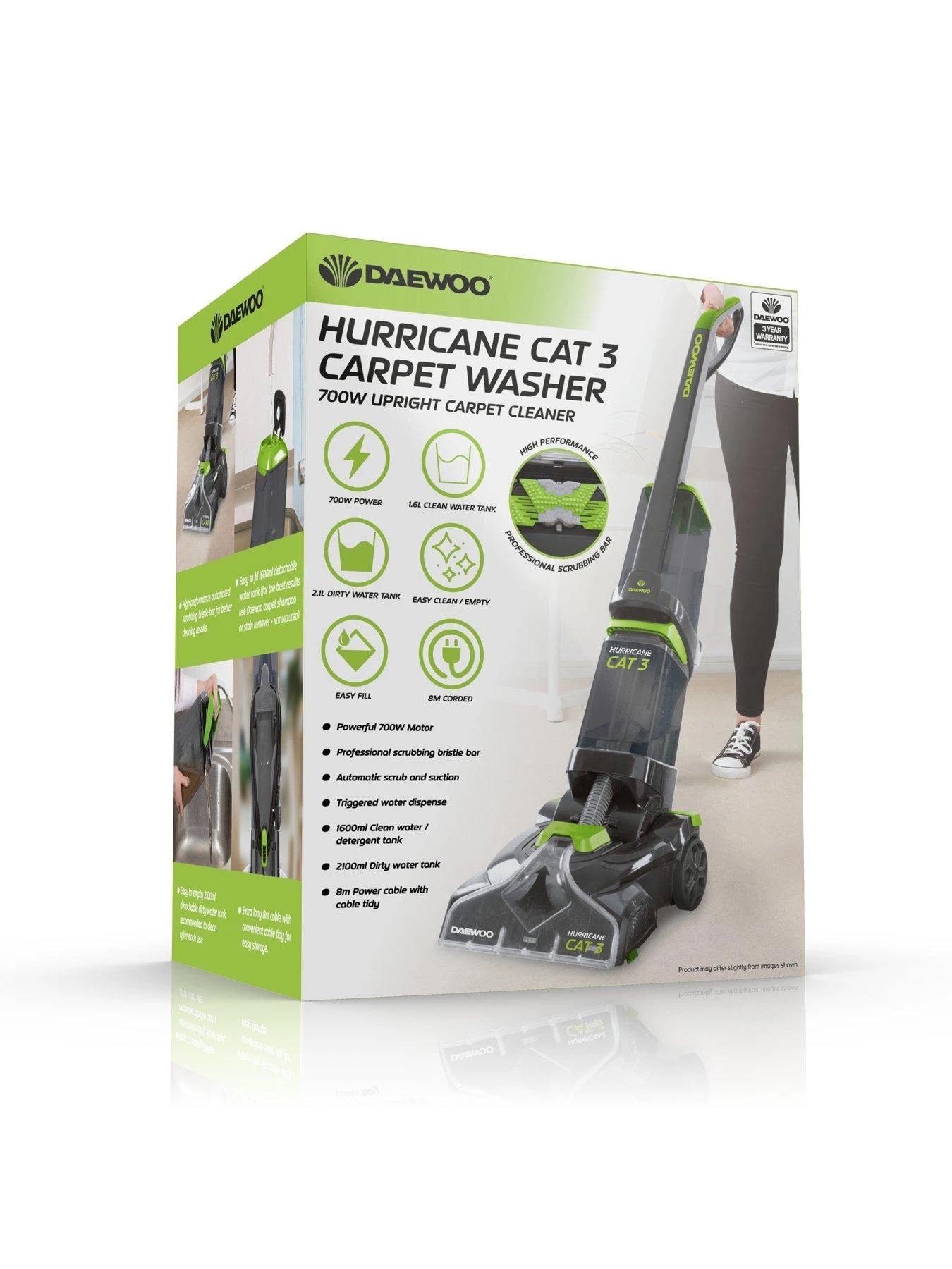 The Daewoo Hurricane Cat 3 Carpet Washer is corded and upright with an easy-empty 1.6L clean water tank and a 2.1L dirty water tank. The carpet cleaner comes with an 8m power cable so you can clean room to room with ease. The dual performance makes cleaning quicker and more effective thanks to the professional level bristle bars, strong suction, and the option to pair it with carpet shampoo. The cleaner is ideal for carpets and rugs.