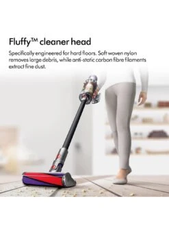 Fluffy™ cleaner head is engineered to delicately remove dust and debris from vinyl, laminate, parquet and all other types of hard floor. Soft woven nylon removes large debris, while anti-static carbon fibre filaments extract fine dust.