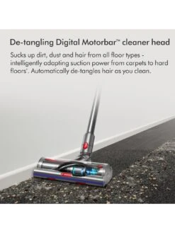 The de-tangling Digital Motorbar™ cleaner head automatically clears wrapped hair from the brush bar.Â