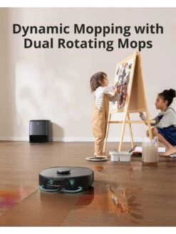 Introducing the game-changing X9 Pro that tackles any floor, easily transitioning between carpets and hard floors. Dual rotating mop pads provide 1 kg of pressure to effortlessly remove grime and stains from hard floors. When carpet is detected, the mop pads raise 12 mm to keep your carpets dry while powerful 5,500 Pa vacuum suction removes dirt, pet hair, and crumbs. Experience the next level of convenience with the AI.See System, which intelligently avoids obstacles for a hands-free cleaning experience. Plus, enjoy hassle-free cleaning with the Auto-Clean Station that washes and dries the mop pads to prevent the growth of bacteria and odors. Get ready to transform your cleaning routine with the X9 Pro-the future of multi-surface cleaning is here!