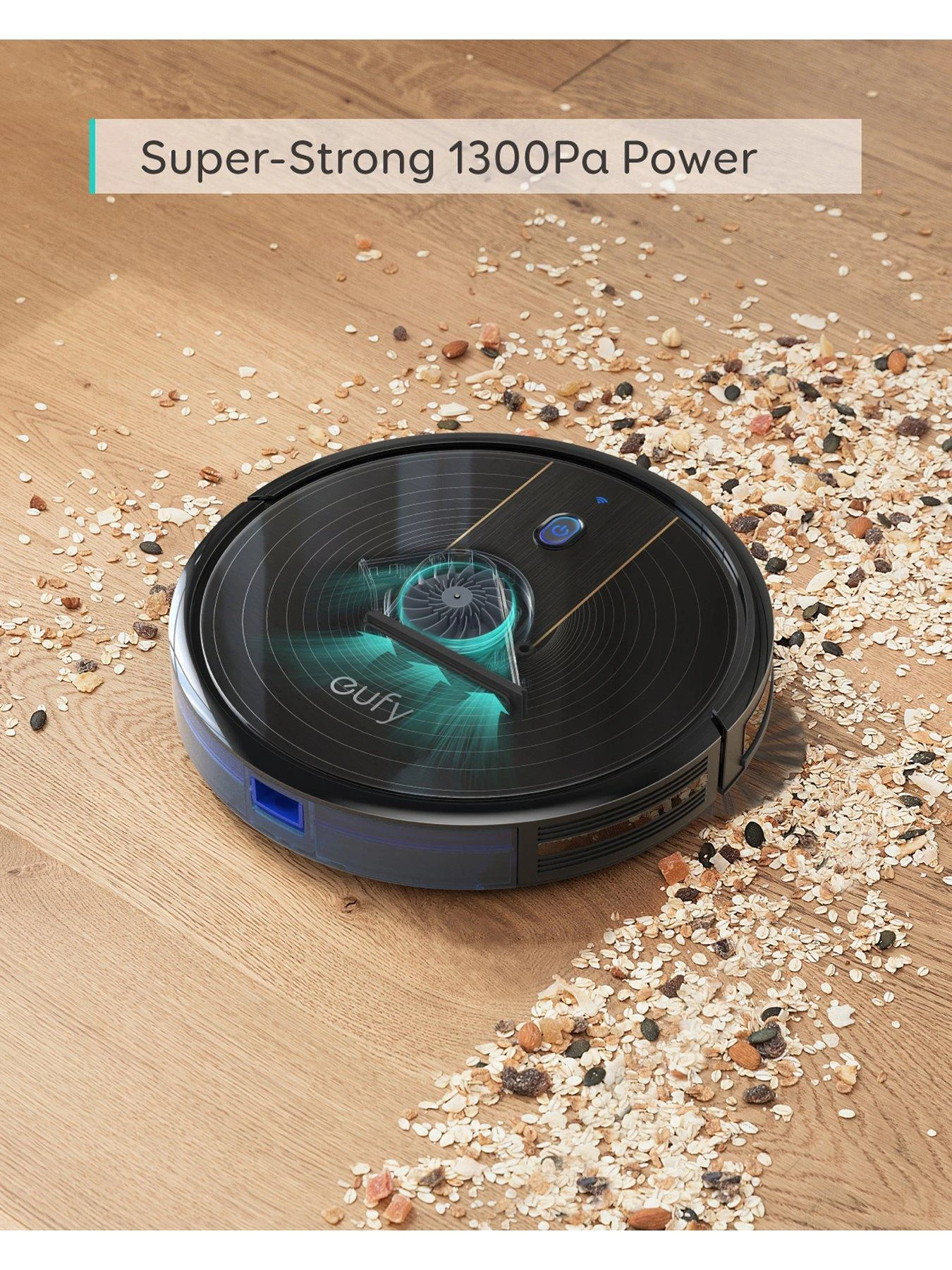 All-New RoboVac: Wi-Fi-equipped and re-engineered to be the slimmest* RoboVac (2.85″) but with increased suction to 1300Pa.