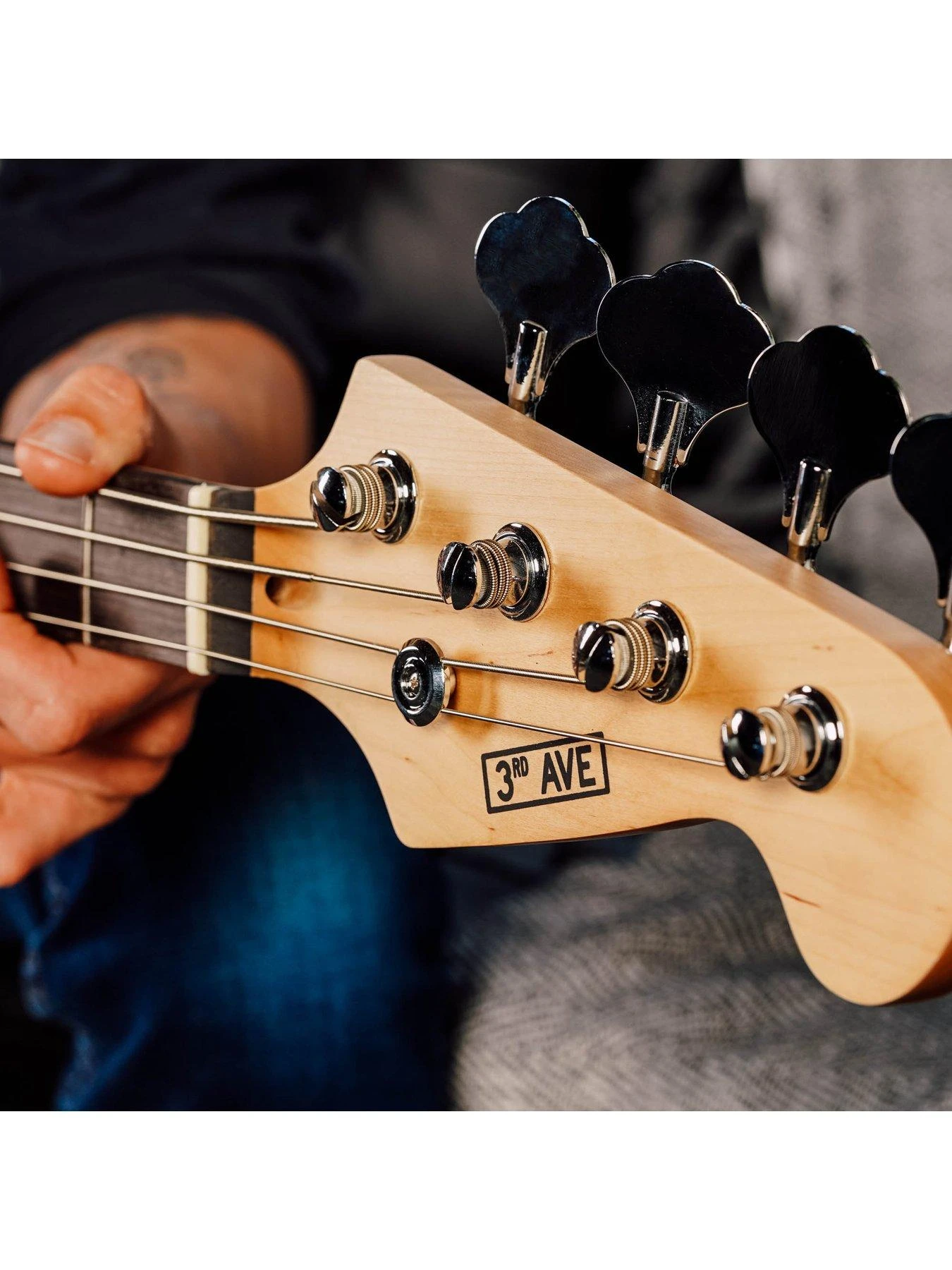 This Bass Guitar features an iconic P-Style design that fits well with any music genre. Its high-gloss finish, complemented by a white scratch plate and covered pickups, creates a sleek and modern aesthetic. A classic single coil split pick-up gives you a deep, punchy and clear tone and the 4 saddle independently adjustable bridge locks in precise tuning.