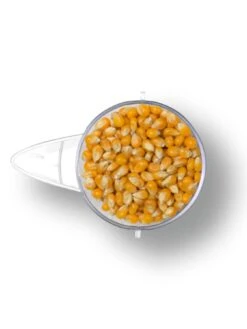 - With 1200 W power, 1 cup of kernels produces a bowl of popcorn and it comes with a measuring cup so you can make just the right amount.