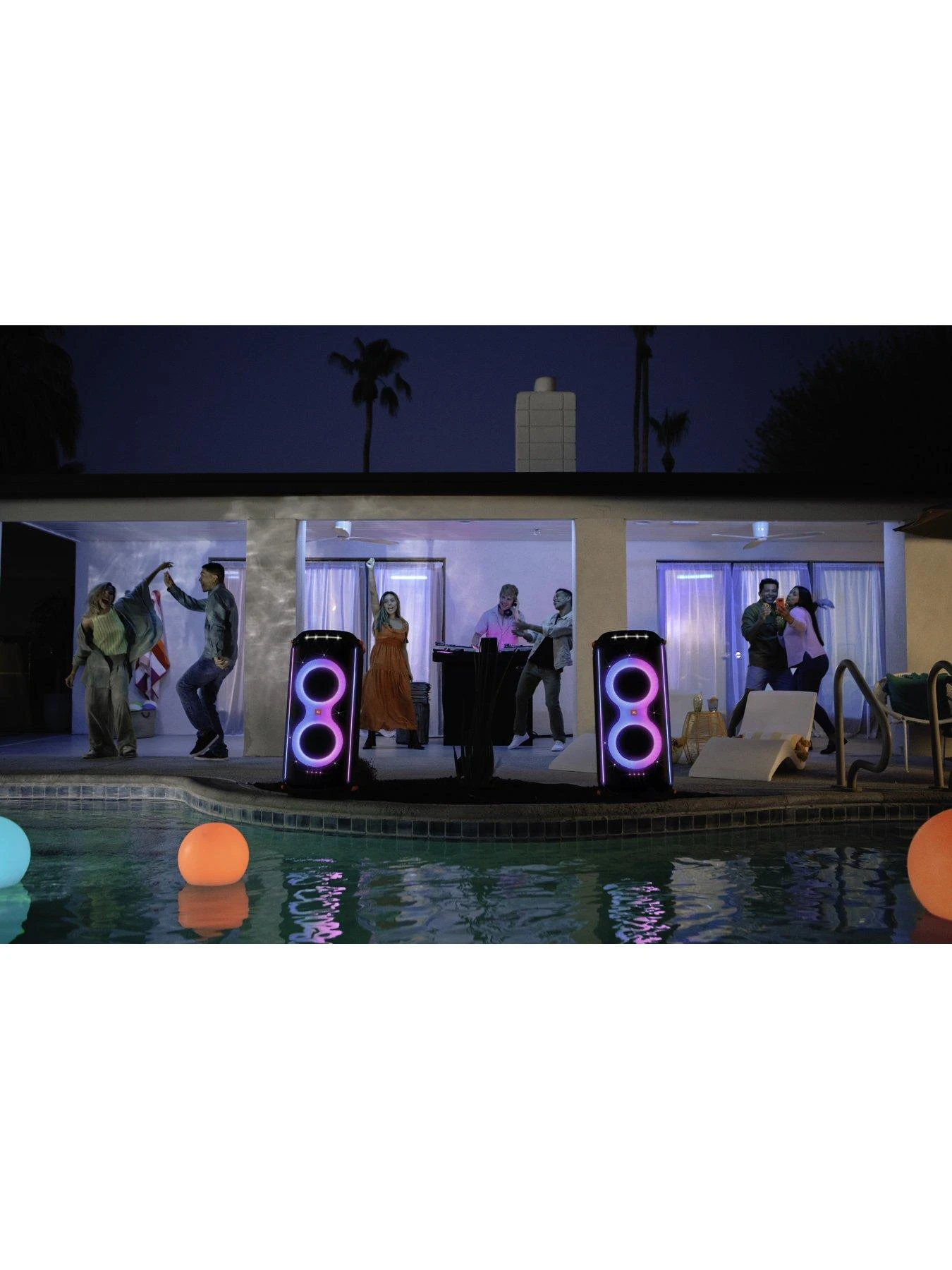 Bring a whole new dimension to any party with the unique dynamic LED lighting, synced to the powerful sound and deep bass of the PartyBox 710 Portable Party Speaker! Your music sounds amazing thanks to 800 powerful watts of high-performance JBL Original Pro Sound. Dual 2.75-inch tweeters and 8-inch woofers paired with a tuned bass reflex port deliver detailed audio perfection and a beat that runs right through you.