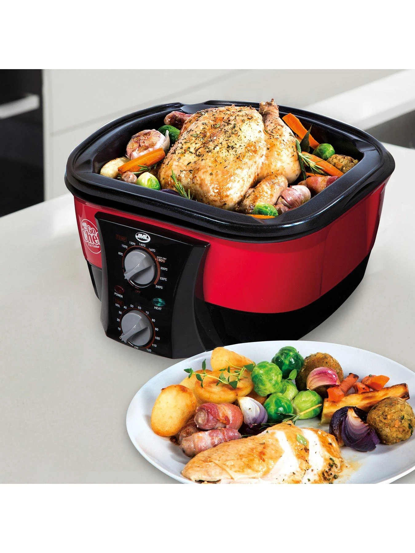 Go Chef 8-in-1 multi-cooker lets you roast, bake, fondue, slow-cook, poach, steam, fry, and boil in one, easy-to-use worktop cooker that can cook a whole meal for an entire family, in minutes, with just one non-stick 5litre ceramic pot. Just set the temperature and time and that’s it! Go Chef heats up in around four minutes, and costs less to run than a standard fan oven. Plus, if you set Go Chef at a low heat you can slow-cook casseroles and stews to enjoy at the end of the day. You can even cook a delicious roast chicken for the whole family. Go chef will even let you cook from frozen. PLUS, it lets you fry in a healthier way because Go Chef has a special non-stick ceramic coating that’s PTFE and PFOA free, meaning you can fry and saute with less oil. And, even clean-up is as easy as a quick wipe and you’re done!