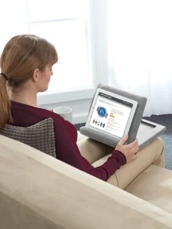 Pill O Pad Foldaway is the super- soft, lap-mounted tablet stand that holds your tablet, e-reader or book at the perfect angle to read, view and interact no matter how you are relaxing. With a wide range of viewing angles, designed for the perfect view in any position, you can sit upright, recline and even lie down flat and Pill O Pad Foldaway will hold your tablet at an angle that’s just right. Now, with Pill O Pad Foldaway, you can have hands-free access to your touch screen, book or magazine for typing, playing games, scrolling or just turning a page without the possibility of aching wrists, hands and arms that holding tablets and books can cause. With a super-soft, comfortable surface and an ultra-lightweight cushion-foam core, Pill O Pad Foldaway will make relaxing screen time or reading even more comfortable.