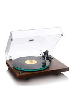 The Lenco LBT-225WA Record Player not only impresses with its user-friendly controls but also stands out for its stylish walnut design.