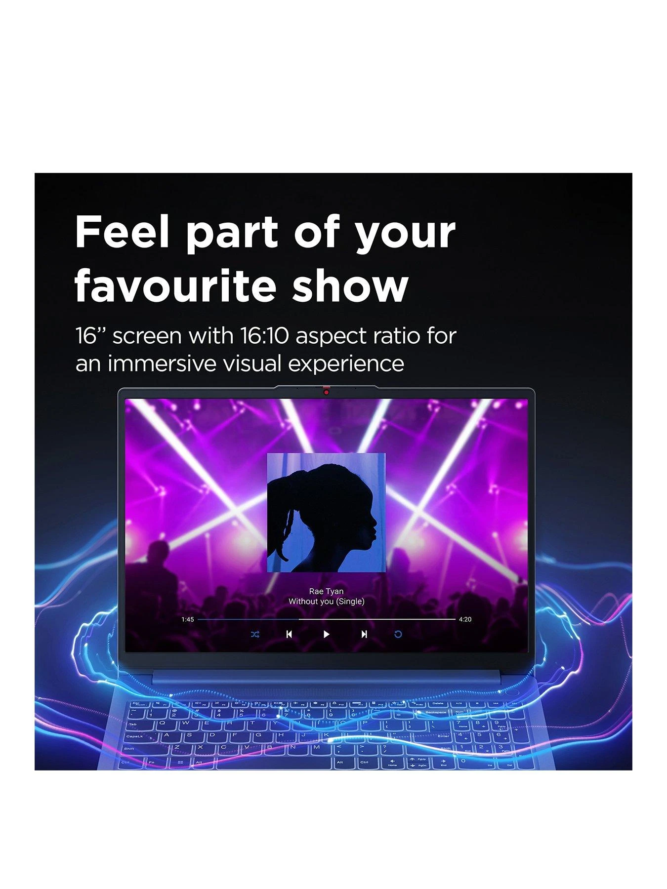 Thanks to the 4-side narrow bezel 16-inch WUXGA (1920 x 1200) TN display with up to 88% AAR, you can enjoy all your favourite movies, videos and websites with high clarity. The IdeaPad Slim 3 also offers crystal-clear sound thanks to dual 1.5W stereo speakers with Dolby Audio.