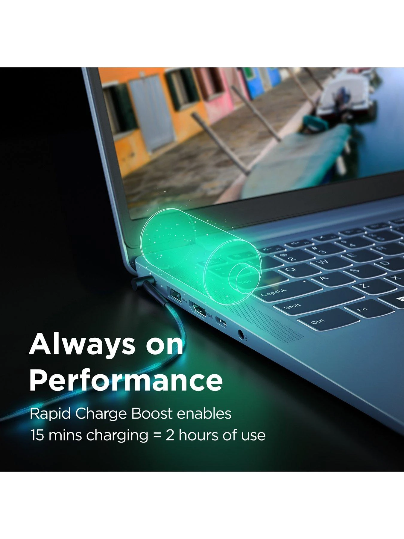 Go faster and further in your work and study with full-function Type-C ports for accelerated power delivery, display output, and data transfer. You also get a bigger touchpad and FHD camera with privacy shutter. Keep up the pace with a larger battery and Rapid Charge Boost that provides two hours of use on a 15-minute charge.