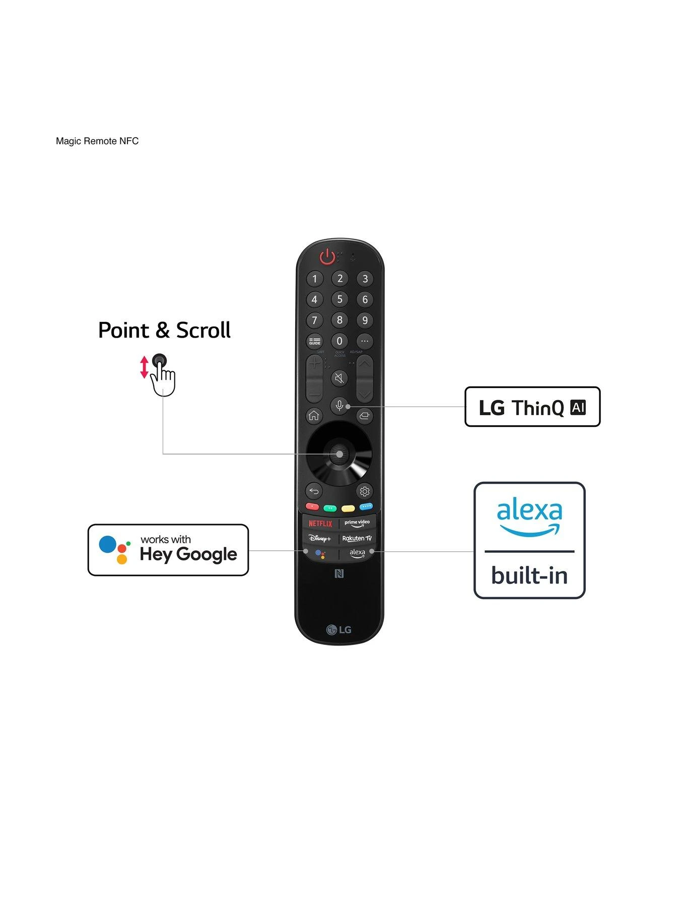 LG’s webOS smart platform hosts a huge variety of streaming services. including Netflix, Prime Video, Disney+ and more. Smart platform is compatible with LG Magic Remote, plus built-in Google Assistant and Alexa.