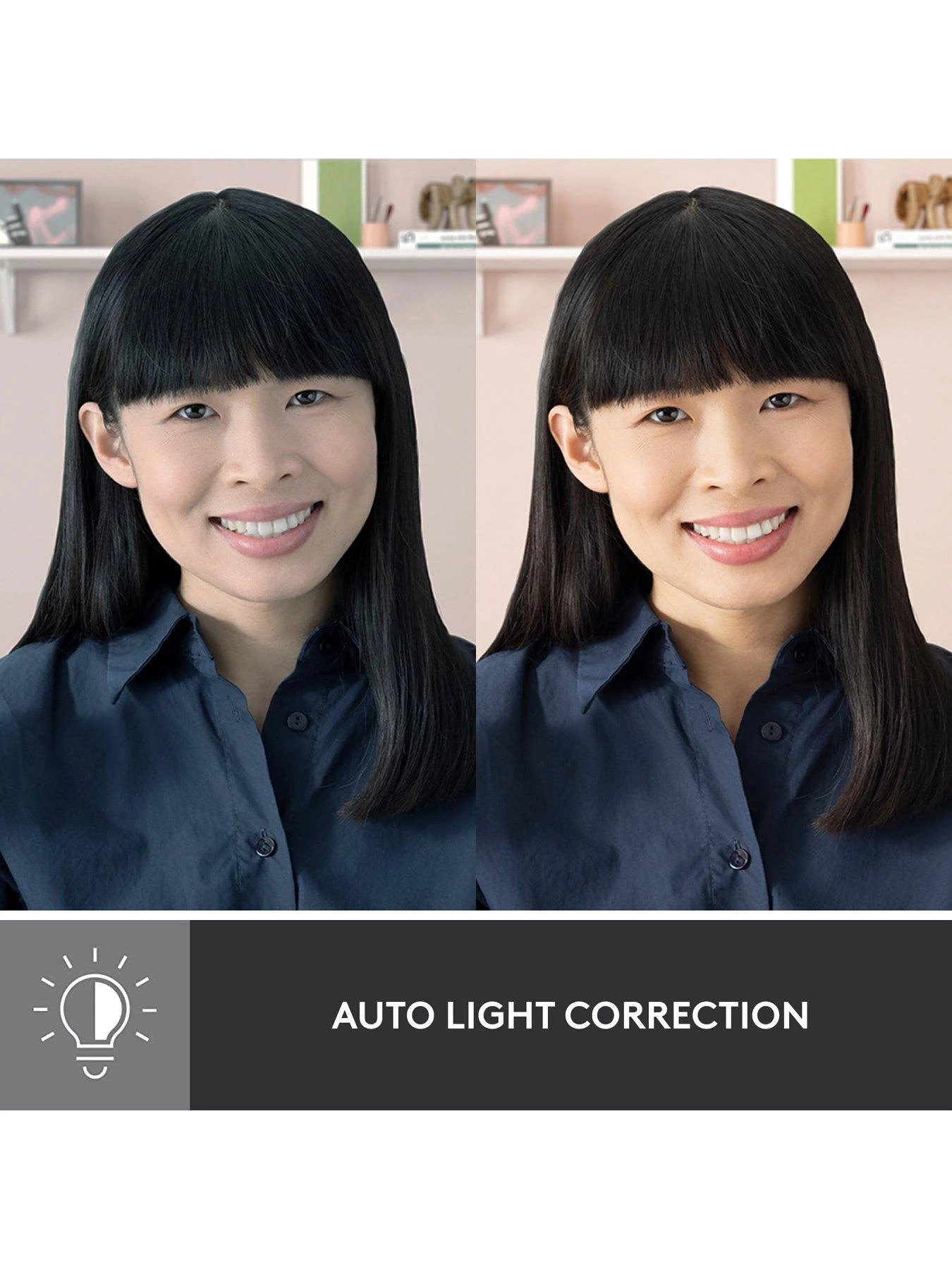 - Full HD 1080p webcam resolution provides natural image quality, so you look like the real you on all meeting apps Auto Light Correction: