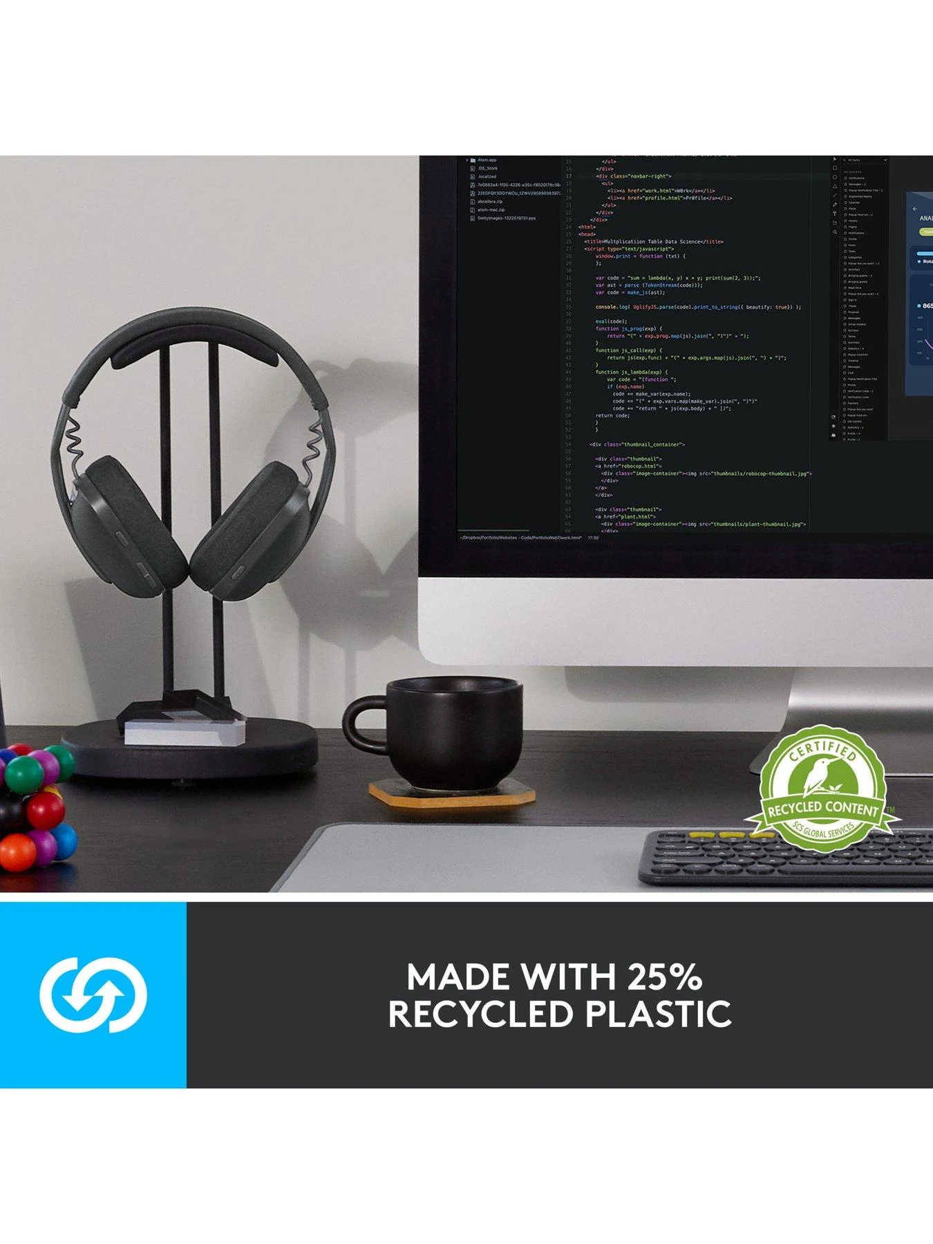Express your sense of style with Zone Vibe 100 wireless headphones. Perfect for working from home, Zone Vibe delivers immersive audio for work or play. Bring meetings to life with full-bodied bass, low-distortion audio, and noise-cancelling mic. Compatible with popular video platforms like Microsoft Teams, Google Meet, and Zoom. Enjoy the freedom to move about and stay connected with multipoint Bluetooth. Talk as long as you want with up to 18 hours of talk time on a full charge. Choose sustainability with Zone Vibe 100, the stylish headset made with 25%* post-consumer recycled plastic for a better future. *excludes accessories and packaging