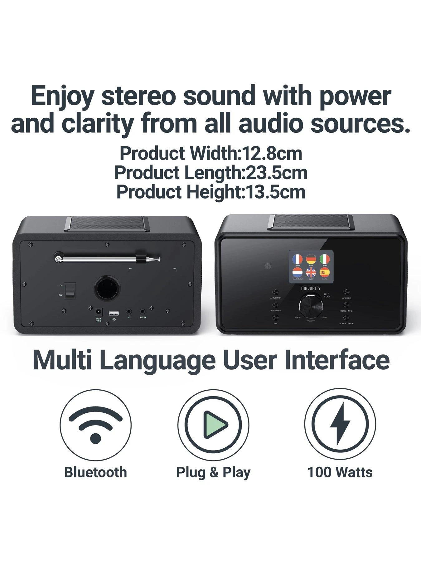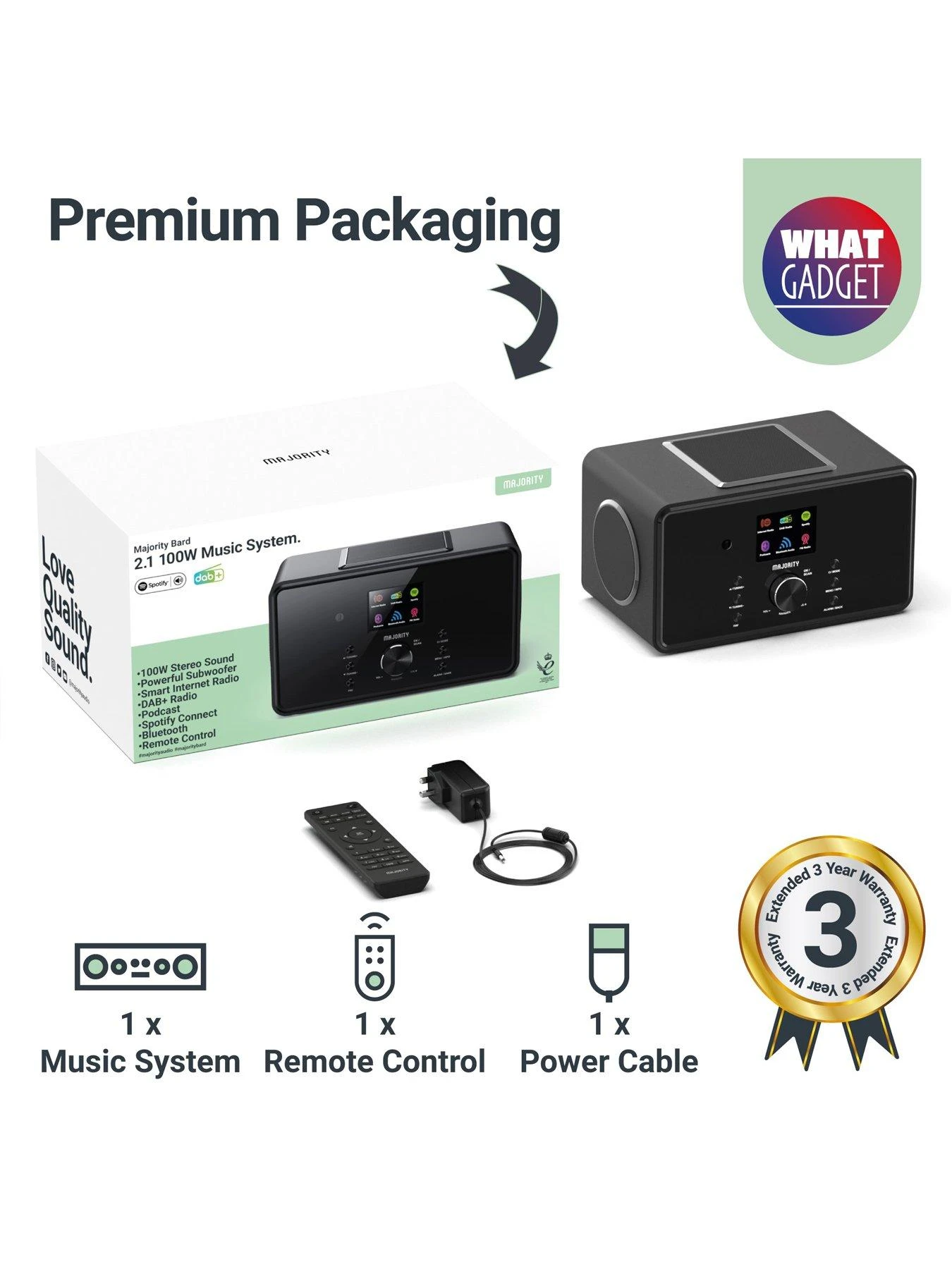 The Bard boasts two 4 inch speakers and is backed up by a huge 5 inch powerful subwoofer, altogether our 100 watt, 2.1 channel internet radio and music system can pack a punch, delivering a deeper bass with clean and crisp audio. Enjoy a wide range of audio channels from DAB and FM radio, additionally when connected to your WiFi, the Bard allows you to access thousands of stations in internet radio mode. The Bard comes with built in Spotify connect to stream your playlists, and gives you access to thousands of podcasts around the world with the dedicated Podcast feature.