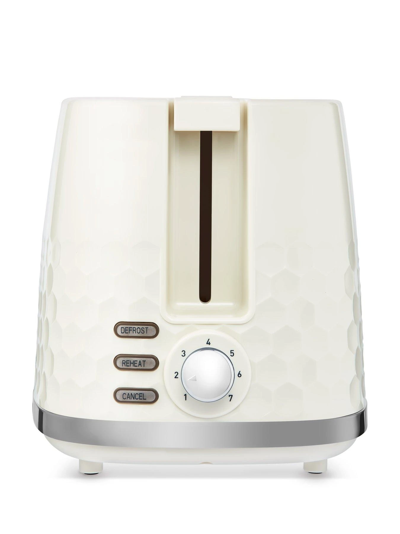 Featuring a stylish patterned exterior and on-trend premium cream gloss finish, this sleek Hive toaster is a smart choice for any contemporary kitchen. The textured surface is inspired by age-old ceramic traditions for a tactile look and feel.