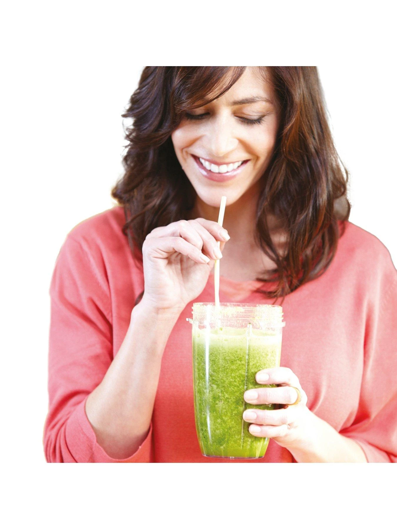 Thanks to a powerful 600 watt motor combined with bullet cyclonic action, everything is pushed through the turbo extractor blades for beautifully smooth results. It bursts open seeds, cracks through stems, and shreds tough skins to get the most out of your fruit and vegetables.