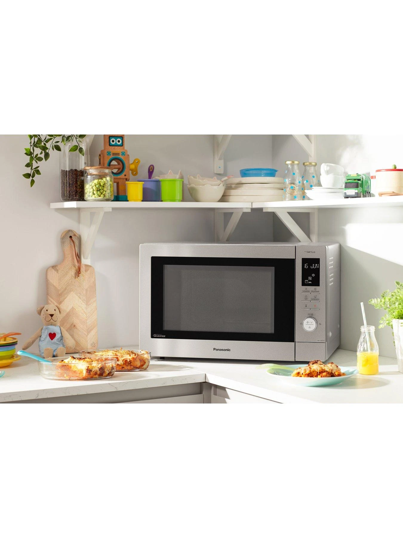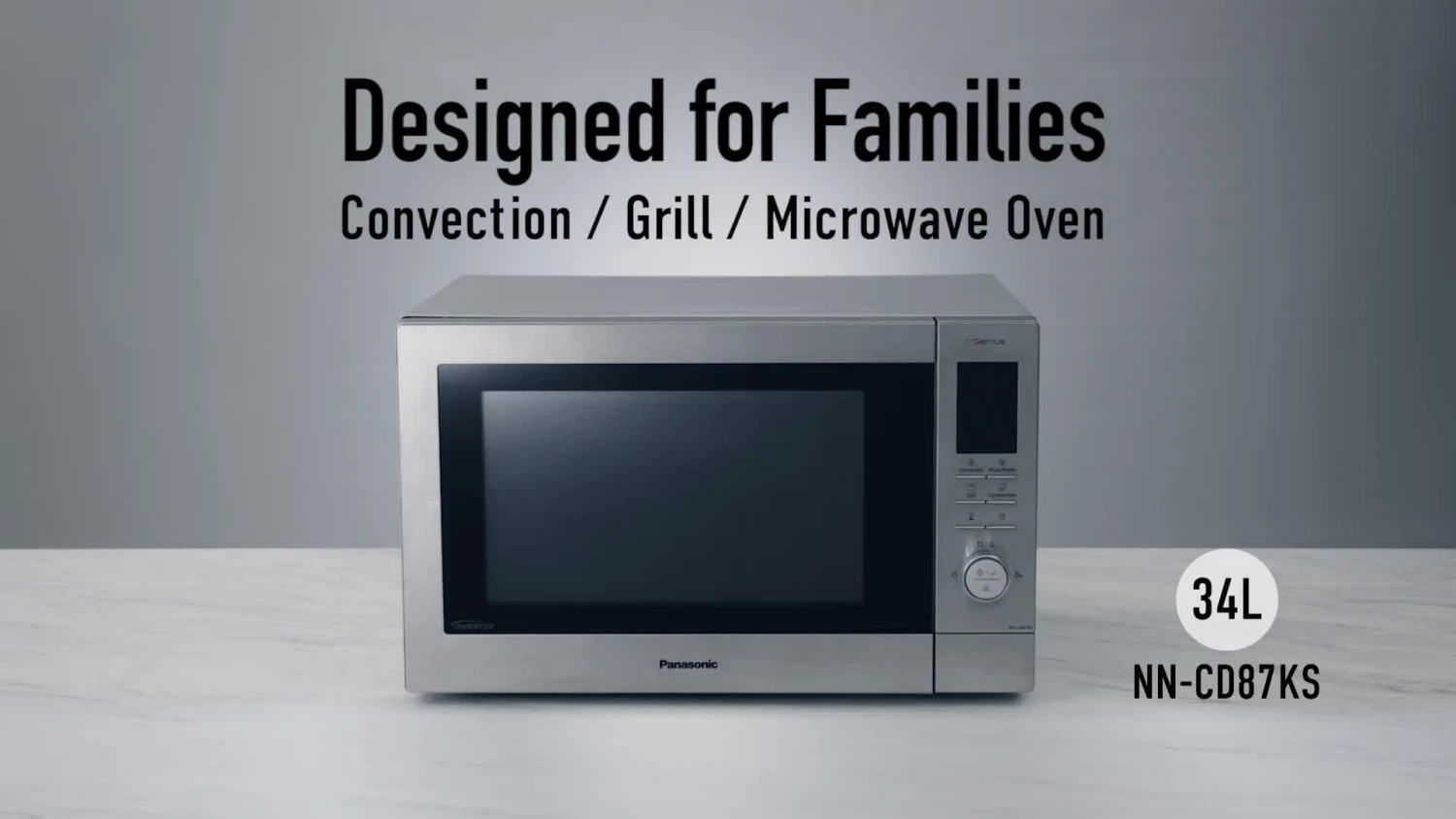 Space-saving 34L Inverter Combi Microwave Oven with an award-winning sleek stainless steel design. The One-Push Reheating function and healthy Junior Menu options help with the easy preparation of healthy meals for the whole family.
