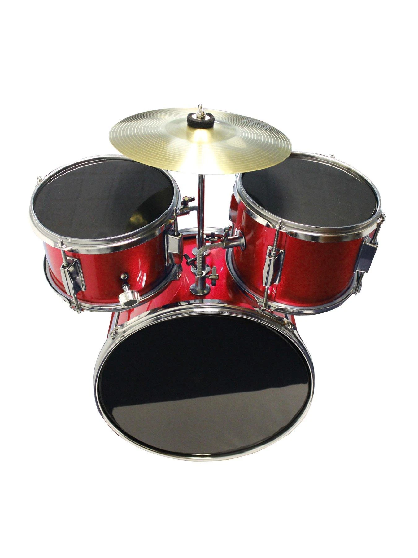 - This three-piece kids drum set is a complete scaled-down, fully functional drum kit featuring everything you would expect of an adult drum kit