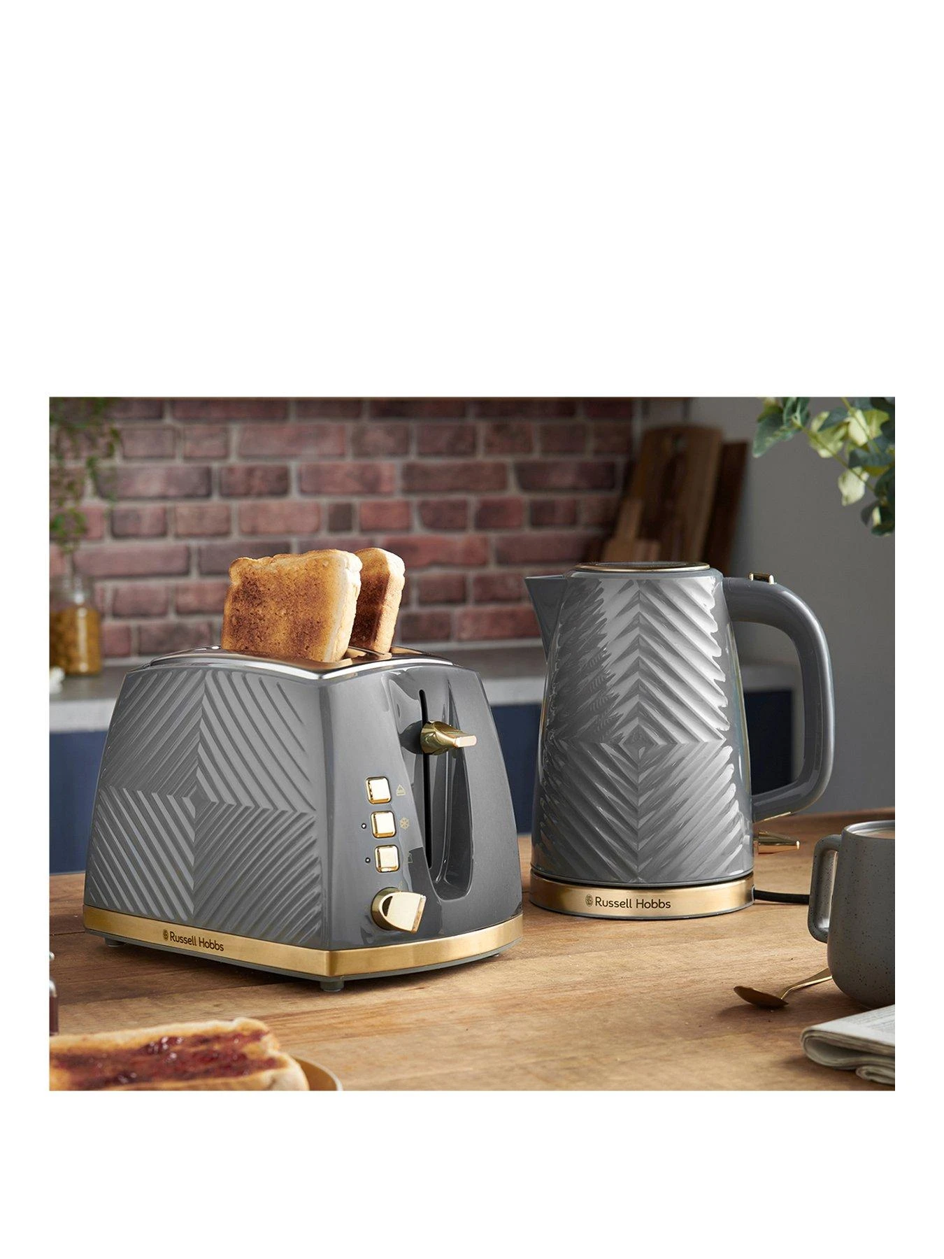 Textures never go out of style and the Russell Hobbs Grey Groove Kettle and Toaster Bundle’s chic, tactile finish and gold accents will make a fashionable statement on your kitchen countertop.
