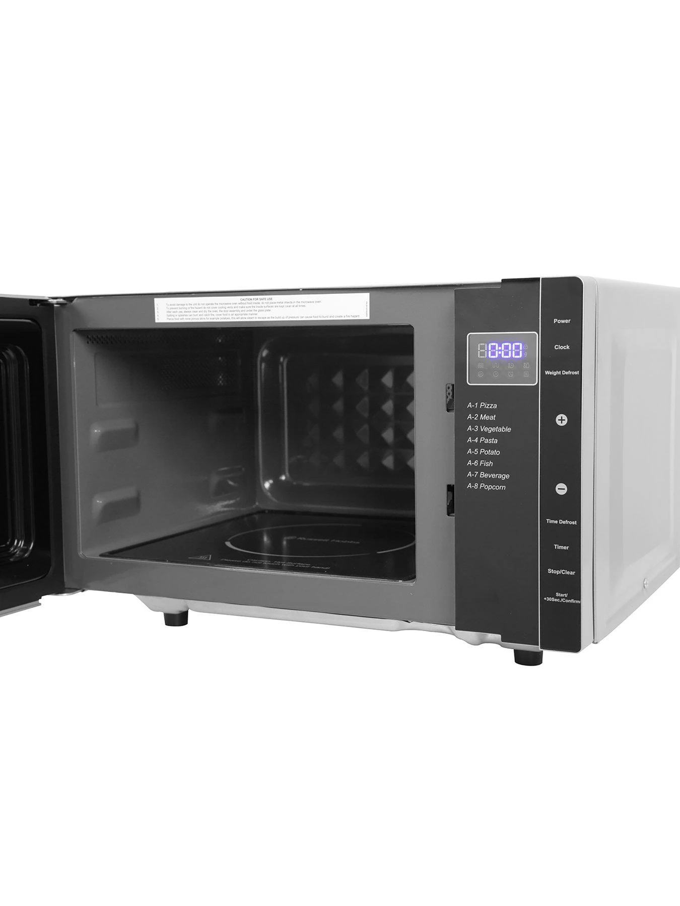 Boasting an attractive mirrored door finish and a contemporary design, this appliance also features impressive functionality, along with 800-watts of microwave power to provide quick and convenient cooking.