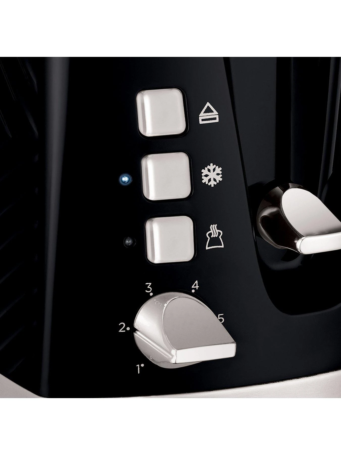 The Textured Black 4-Slice Toaster combines quality performance with lasting design. With Lift and Look and 6 Browning levels, you can enjoy your toast the way you like it. And its 3 Functions: Frozen, Reheat and Cancel take care of the rest. Wider slots mean you can toast thicker slices and a handy high lift feature allows you to safely retrieve slices of hot toast at the touch of a button.
