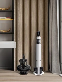 The Samsung Bespoke Jet™ Pet VS20A95823W/EU Cordless Stick Vacuum Cleaner gives you powerful cordless cleaning and a long battery life.