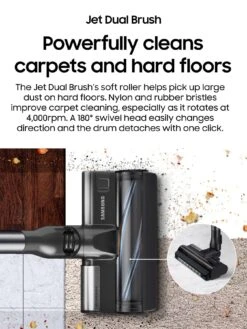 Say goodbye to unreachable dust with the extreme suction power of Samsung’s Jet Cyclone. With an optimal air path reducing air resistance around the dustbin and 27 air inlets minimising the loss of suction, you can now breathe easy, knowing your vacuum will deliver consistent performance in any room.