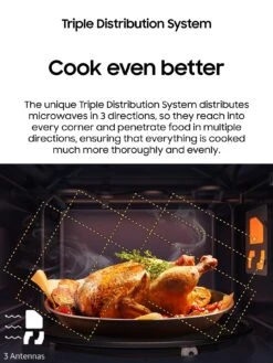 Make sure that everything you cook is perfectly prepared and simply delicious. The unique Triple Distribution System distributes microwaves in 3 directions, so they reach into every corner and penetrate food in multiple directions, ensuring that everything is cooked much more thoroughly and evenly.