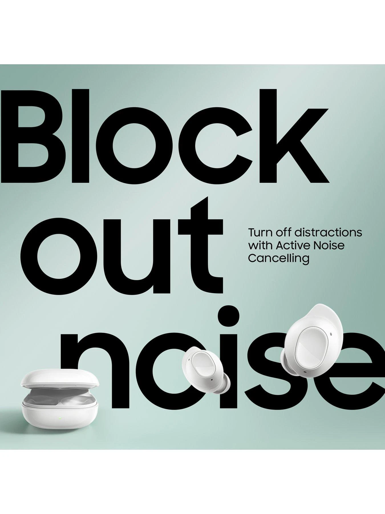 With Galaxy Buds FE, you only hear what you want to. Whatever’s going on outside, stay immersed in music thanks to Active Noise Cancellation. And with Ambient Noise, there’s no need to remove the buds to hear announcements on the train. Hands-free calls are always crystal clear with AI technology that filters out background noises like traffic or building sites. And the new speaker provides rich bass that you can vibe to all day, thanks to the long-lasting battery.