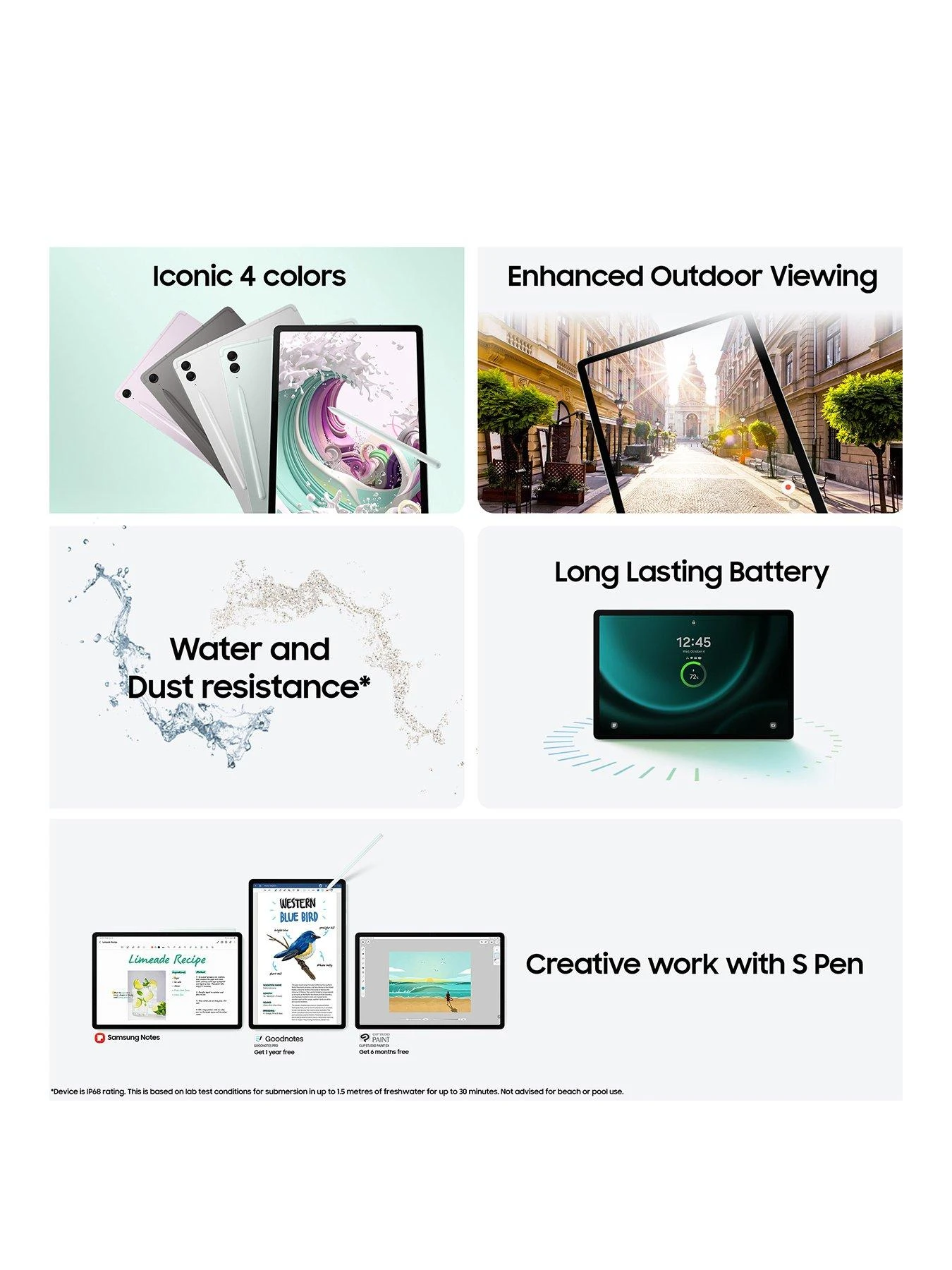 Boasting an incredibly vibrant 10.9′ display, Galaxy Tab S9 FE is built to entertain children and adults alike. Kids will stay entertained with games and movies on those long car journeys thanks to the super smooth 90Hz refresh rate. Take it outside and Vision Booster ensures the onscreen fun is still clear and colourful, even in direct sunlight.