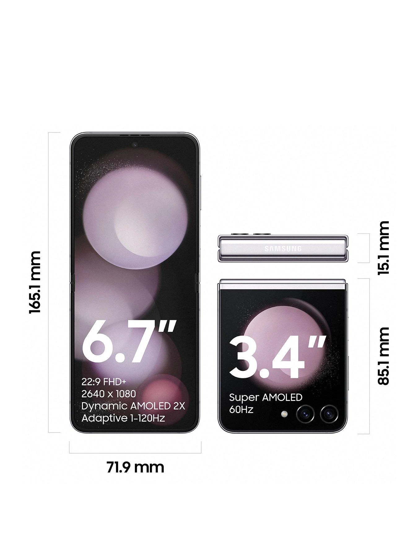 - 3.4” Flex Window & 6.7″ Main Display