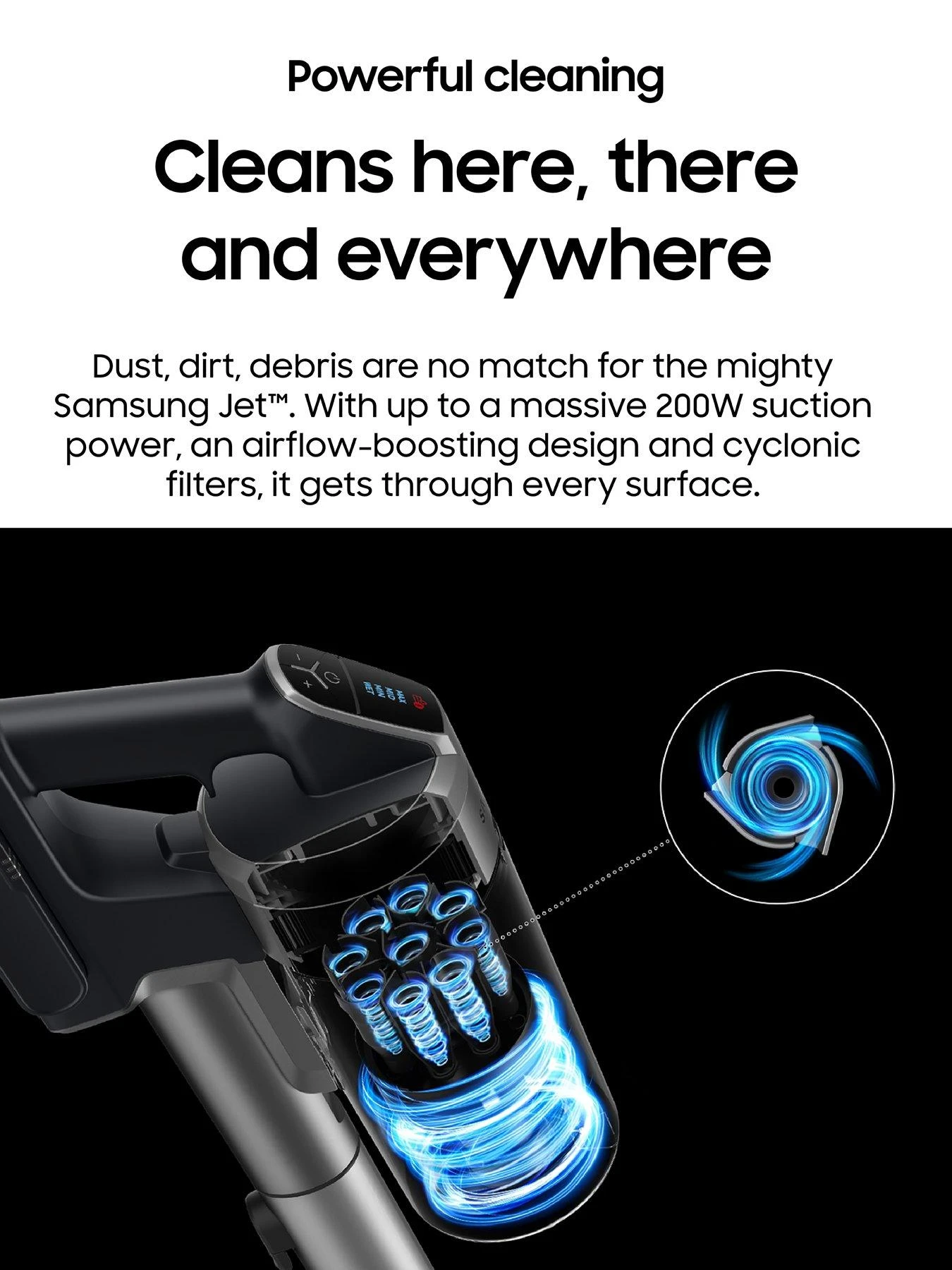 The Samsung Jet 75 Pet VS20T7532T1 Cordless Stick Vacuum Cleaner gives you a powerful, deep down clean every time.