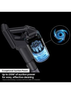 Say goodbye to unreachable dust with the extreme suction power of Samsung’s Jet Cyclone. With an optimal air path reducing air resistance around the dustbin with 9 separate cyclones and 27 air inlets minimising the loss of suction, so your vacuum will deliver consistent performance in any room.